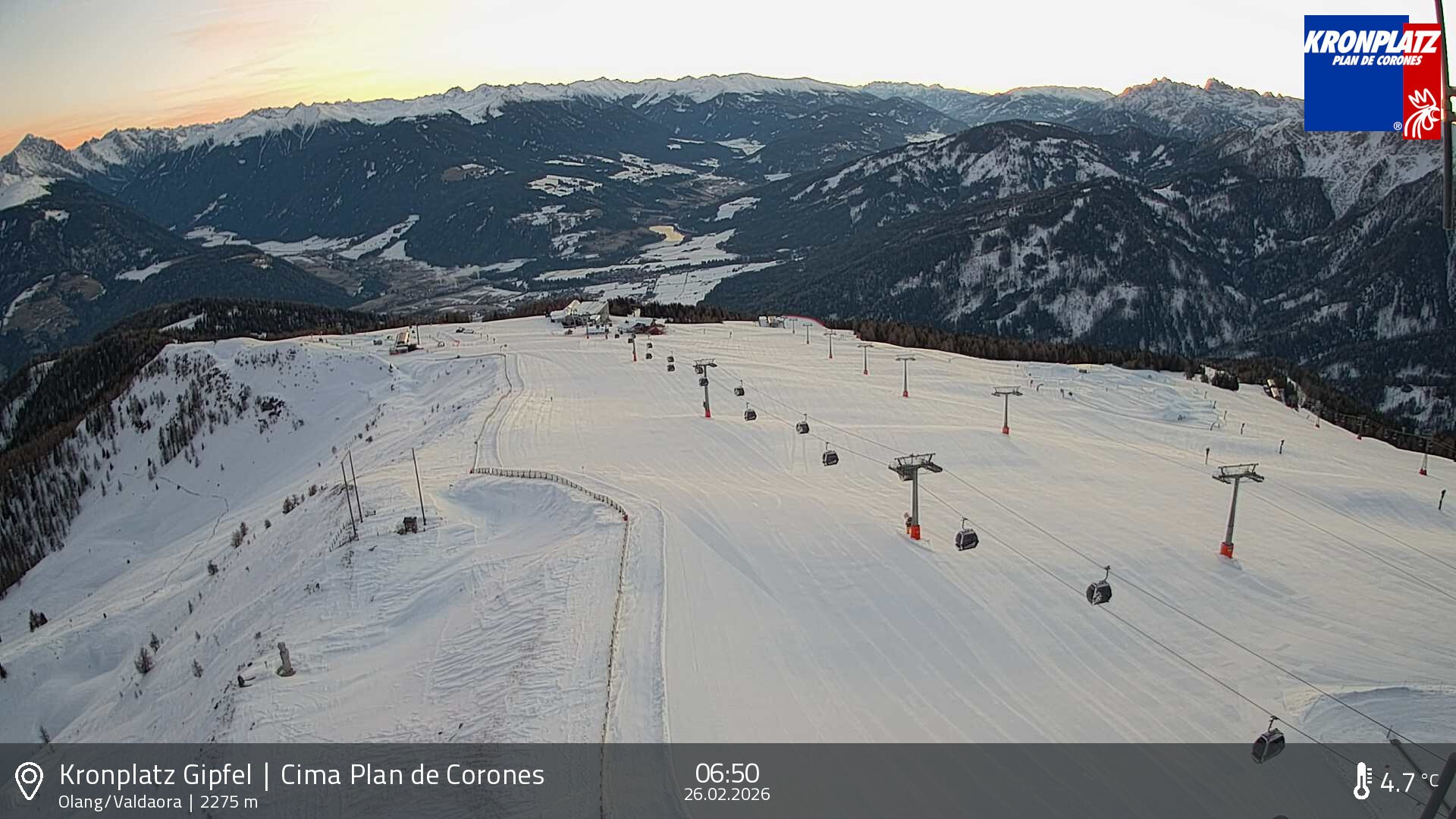 Archived webcam image showing Plan De Corones, Olang on 26 Feb 2026 at 06:12 05:00