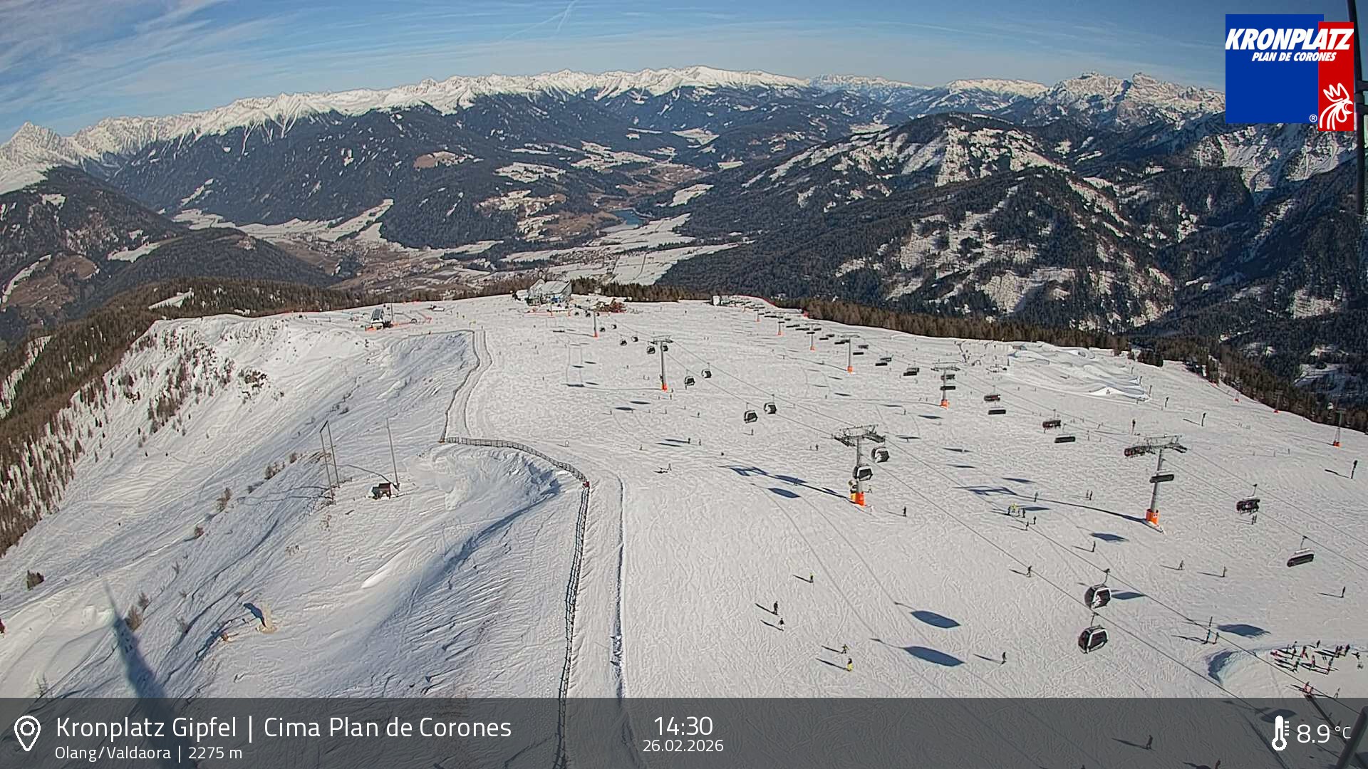 Archived webcam image showing Plan De Corones, Olang on 26 Feb 2026 at 08:12 07:00