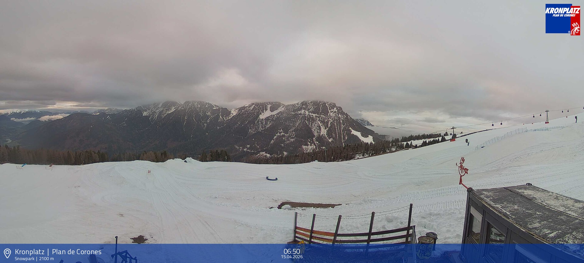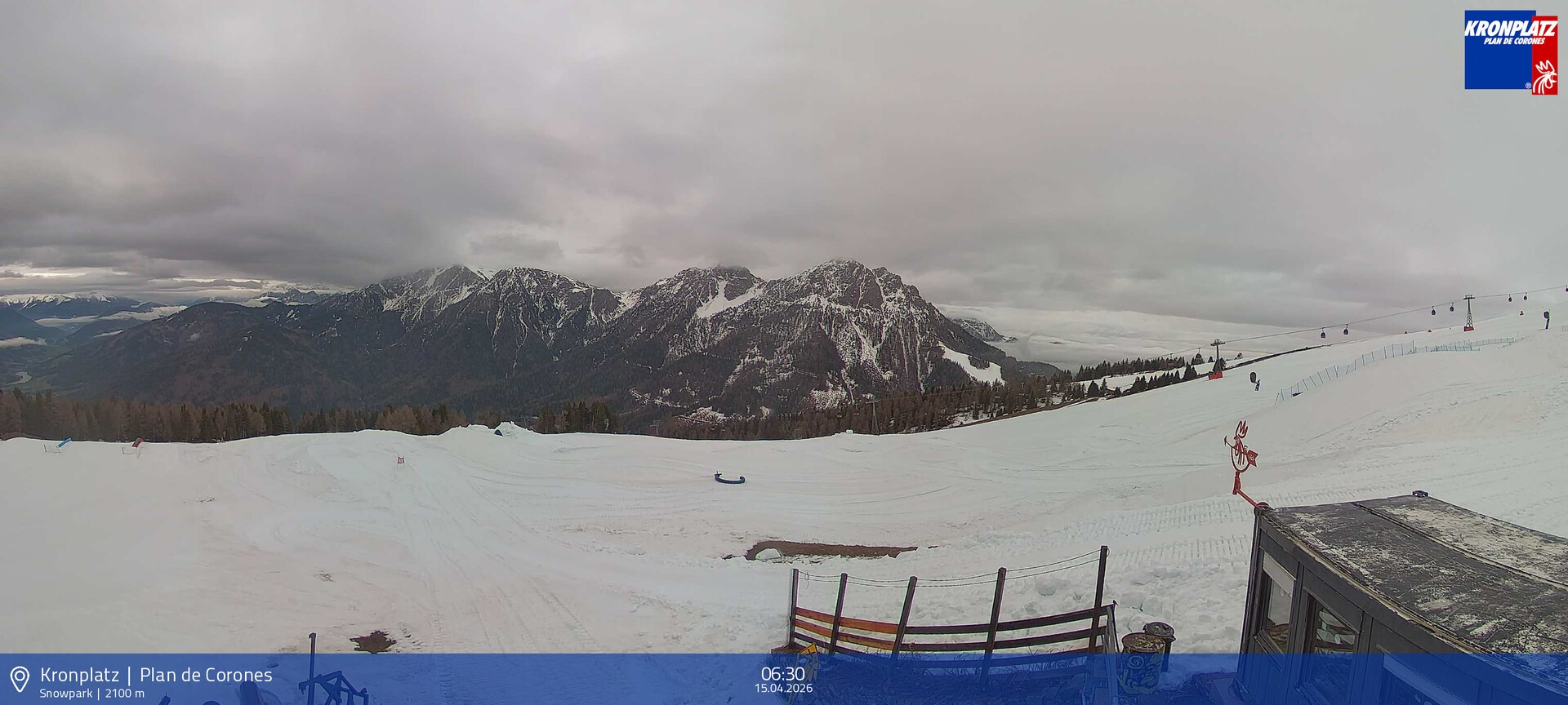 Archived webcam image showing Terrain park, Plan de Corones on 15 Apr 2026 at 06:40 05:00