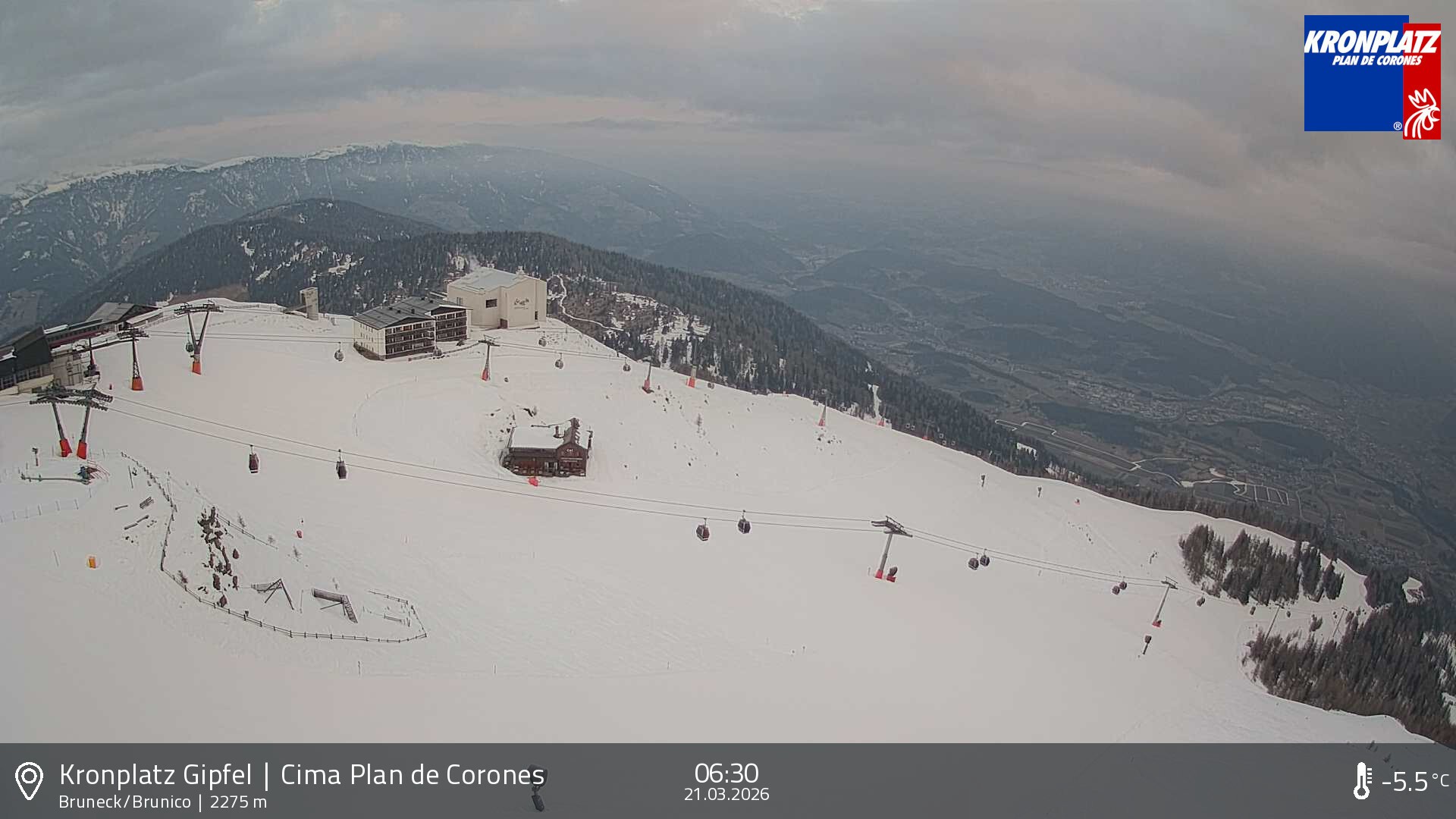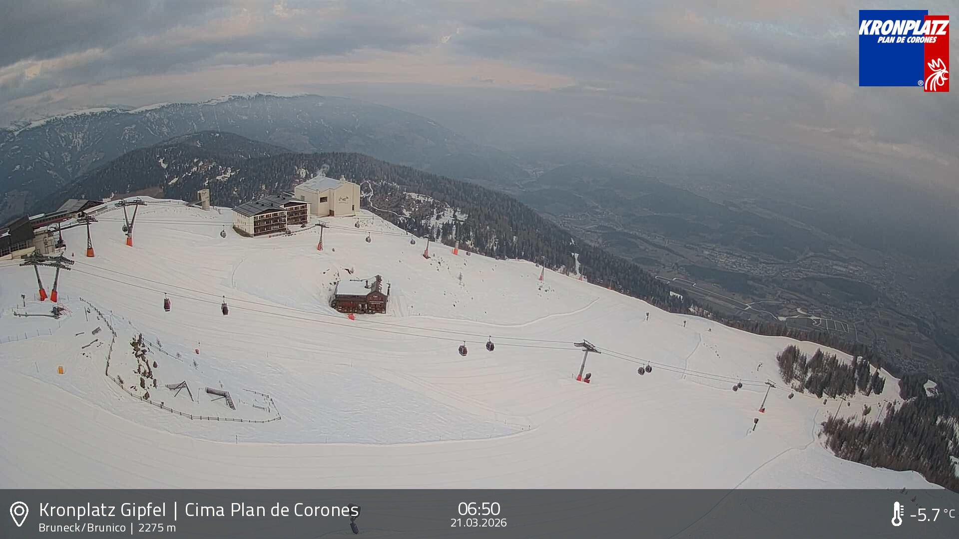 Archived webcam image showing View To Brunico on 21 Mar 2026 at 06:34 05:00