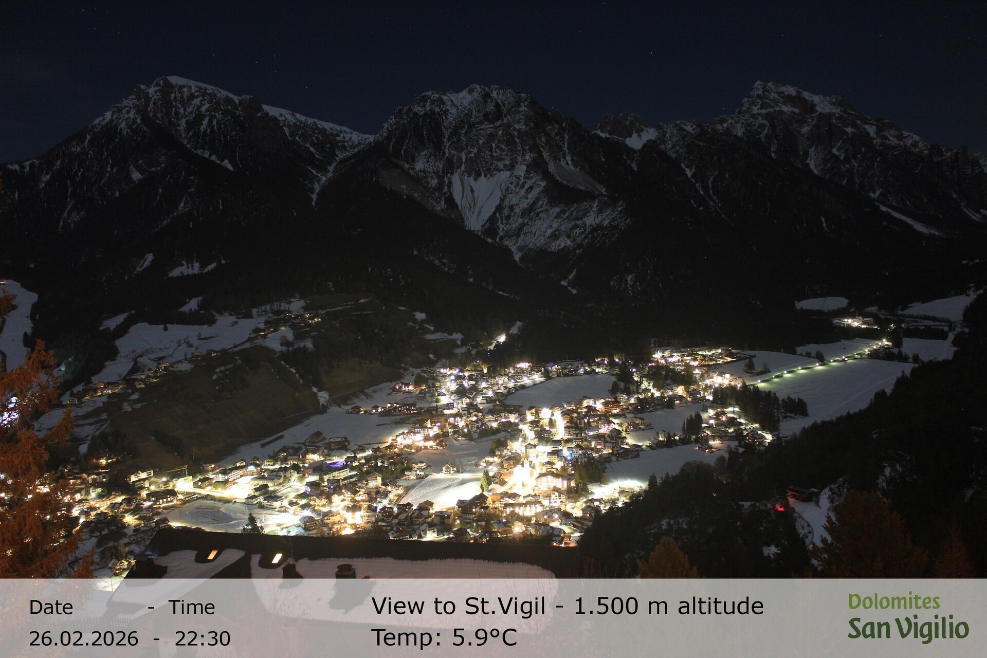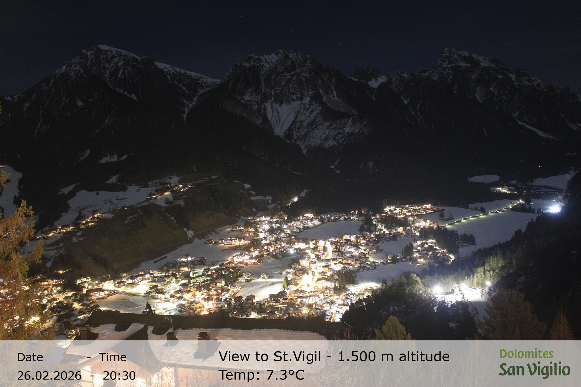 Archived webcam image showing View towards San Vigilio in South Tyrol at 1.500 m on 26 Feb 2026 at 20:15 Latest