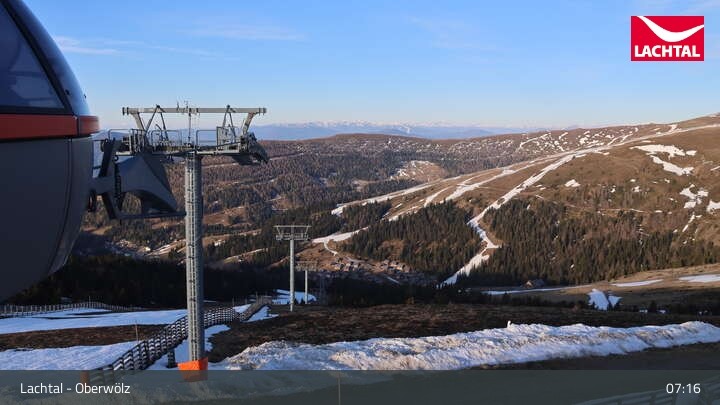 Archived webcam image showing Lachtal: Chair Lift Schönberg on 23 Apr 2026 at 07:30 06:00