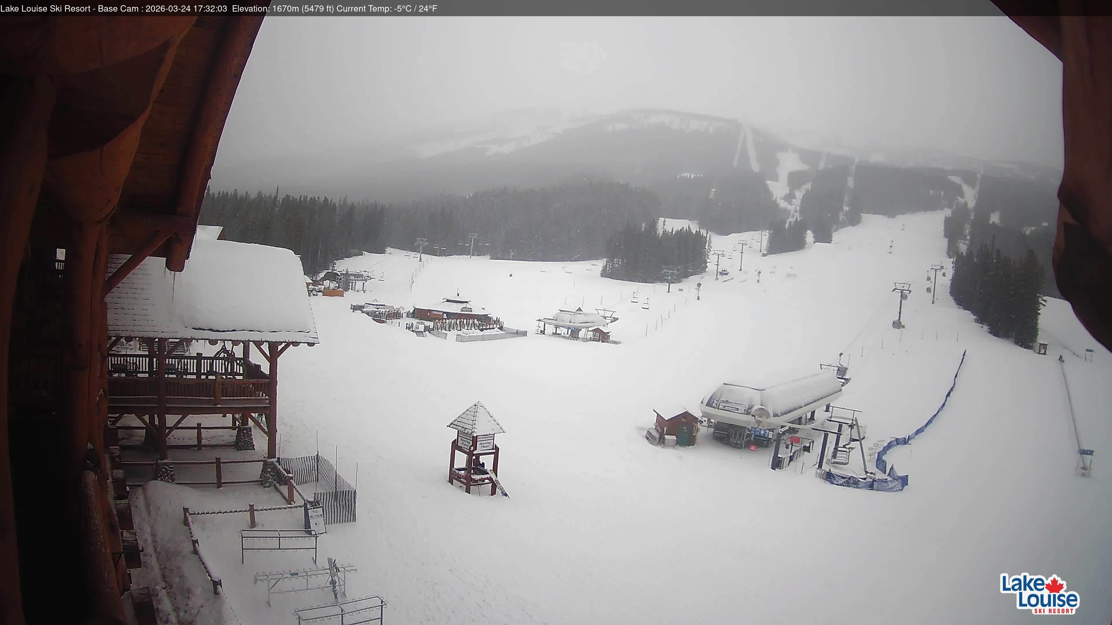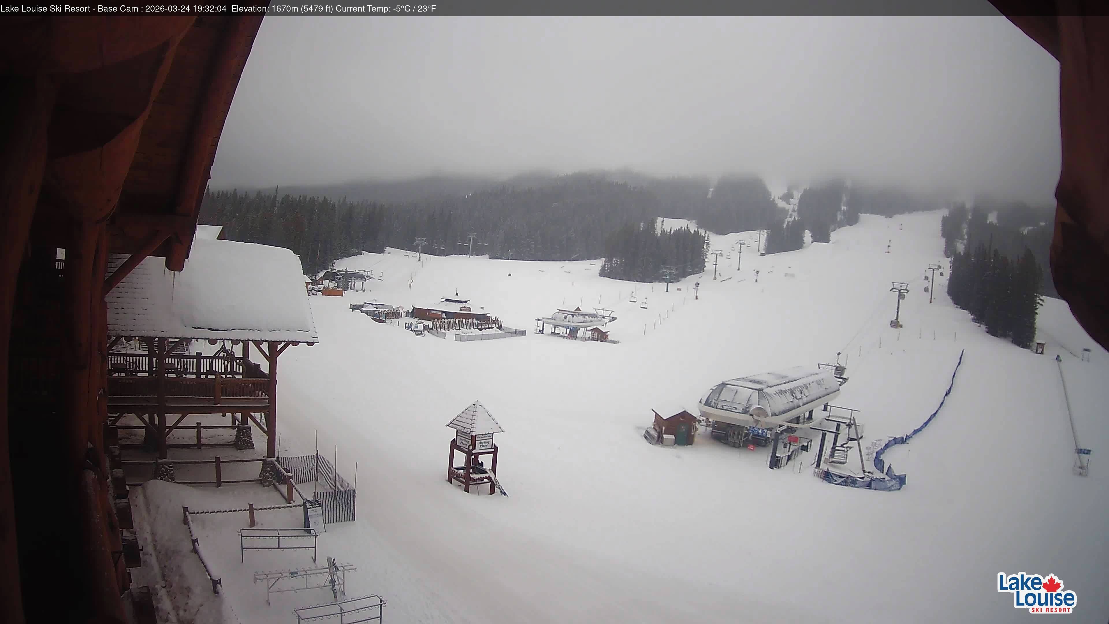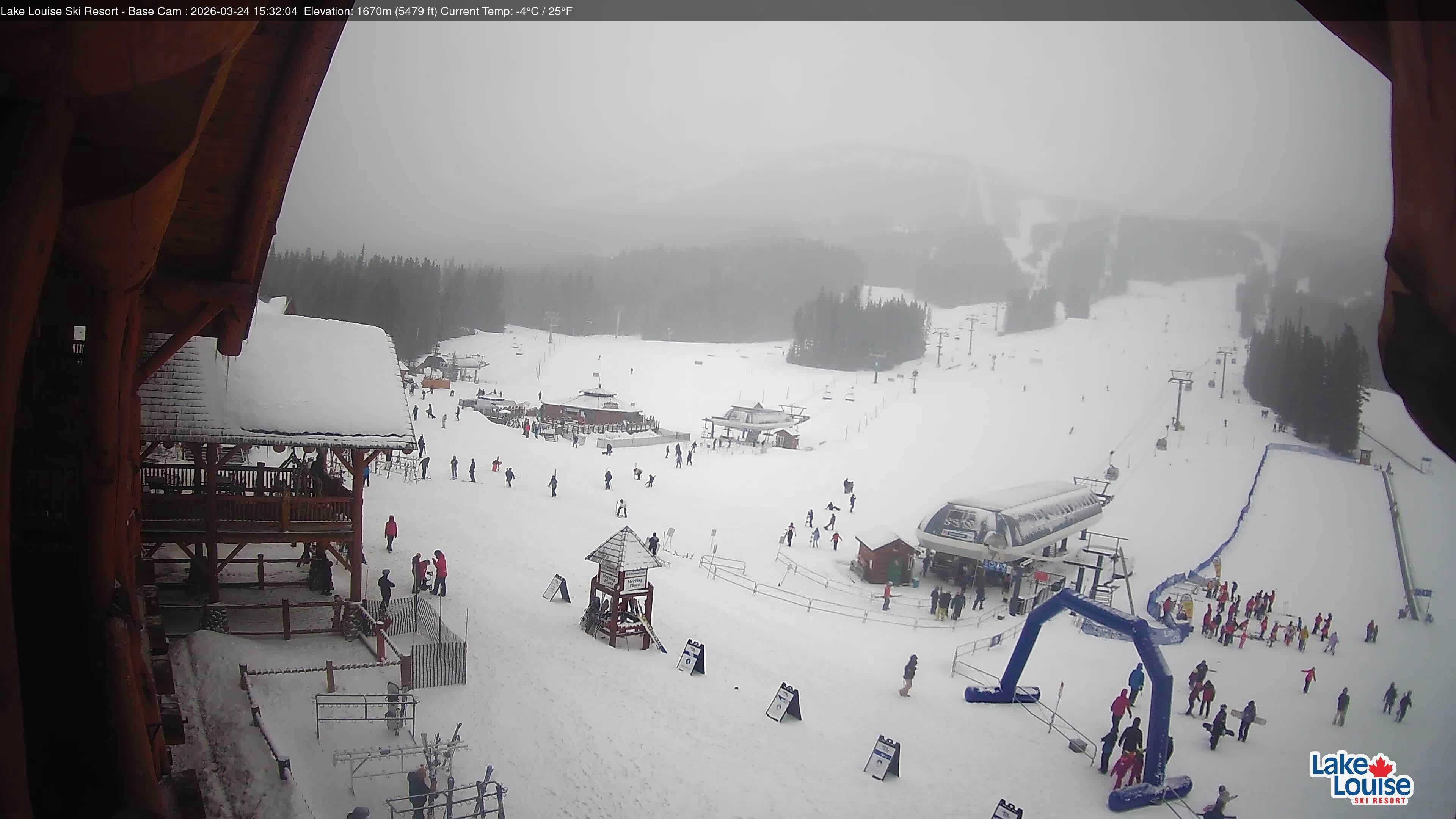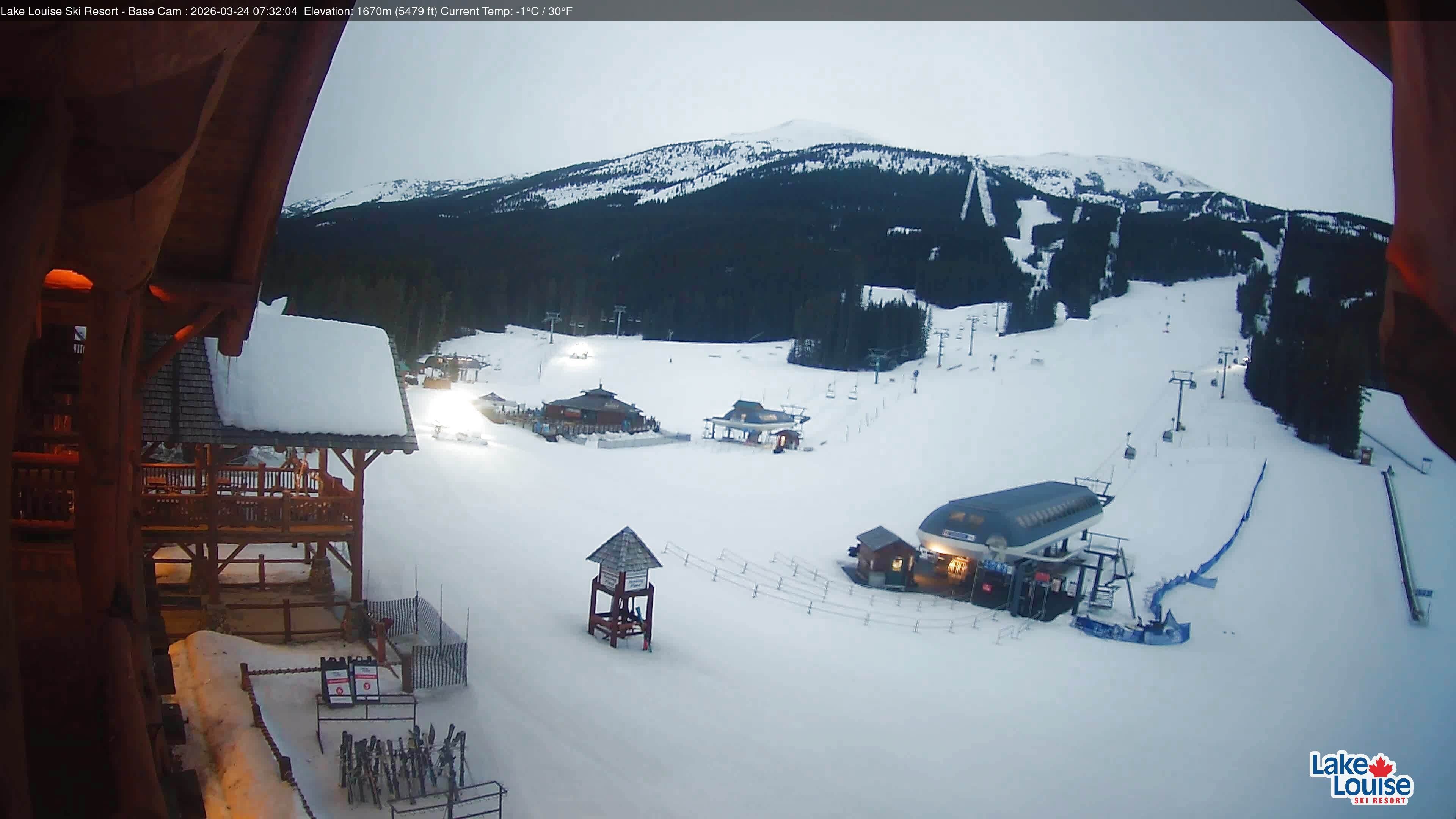 Archived webcam image showing Base Area Lake Louise on 25 Mar 2026 at 02:36 Latest