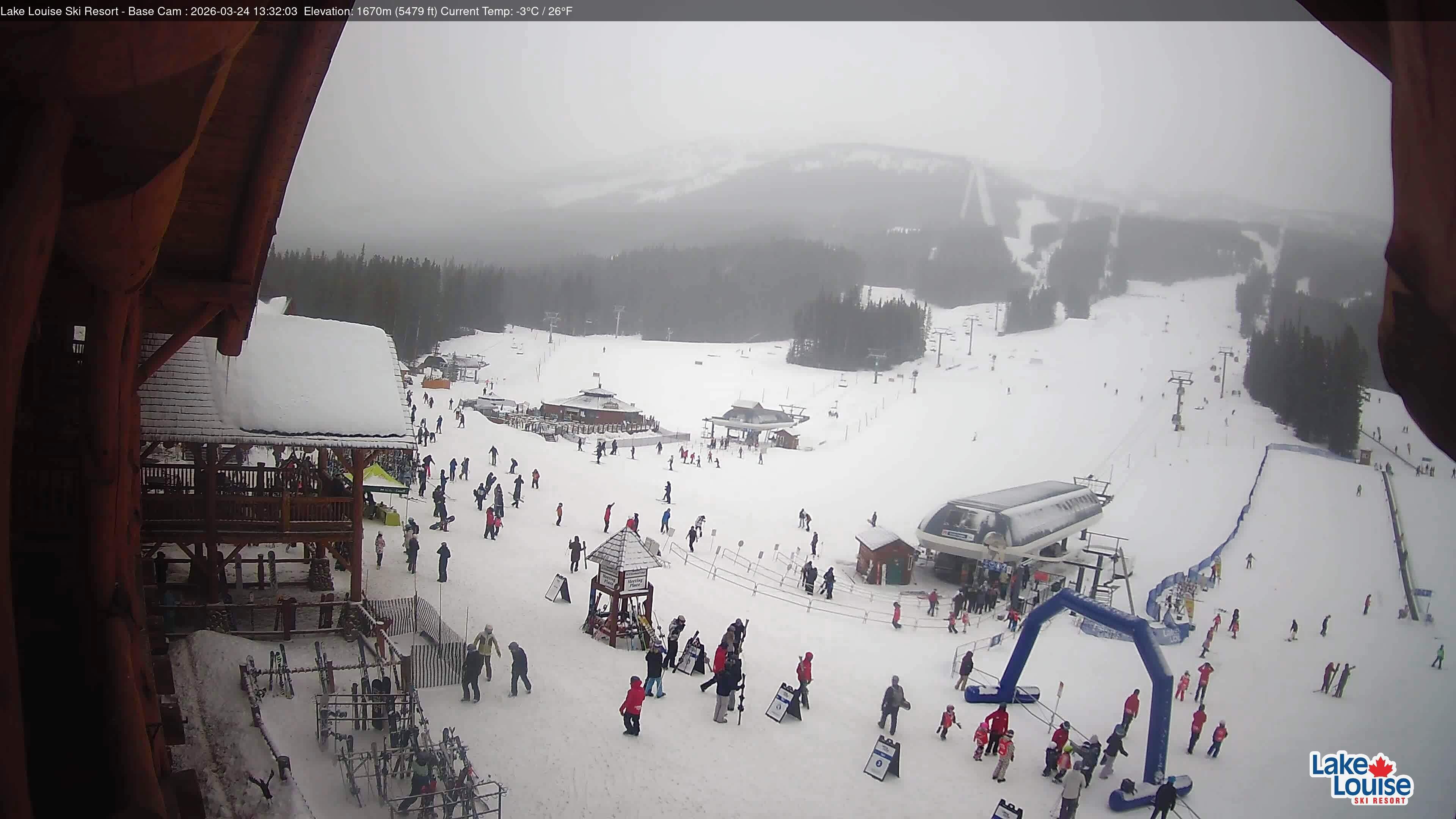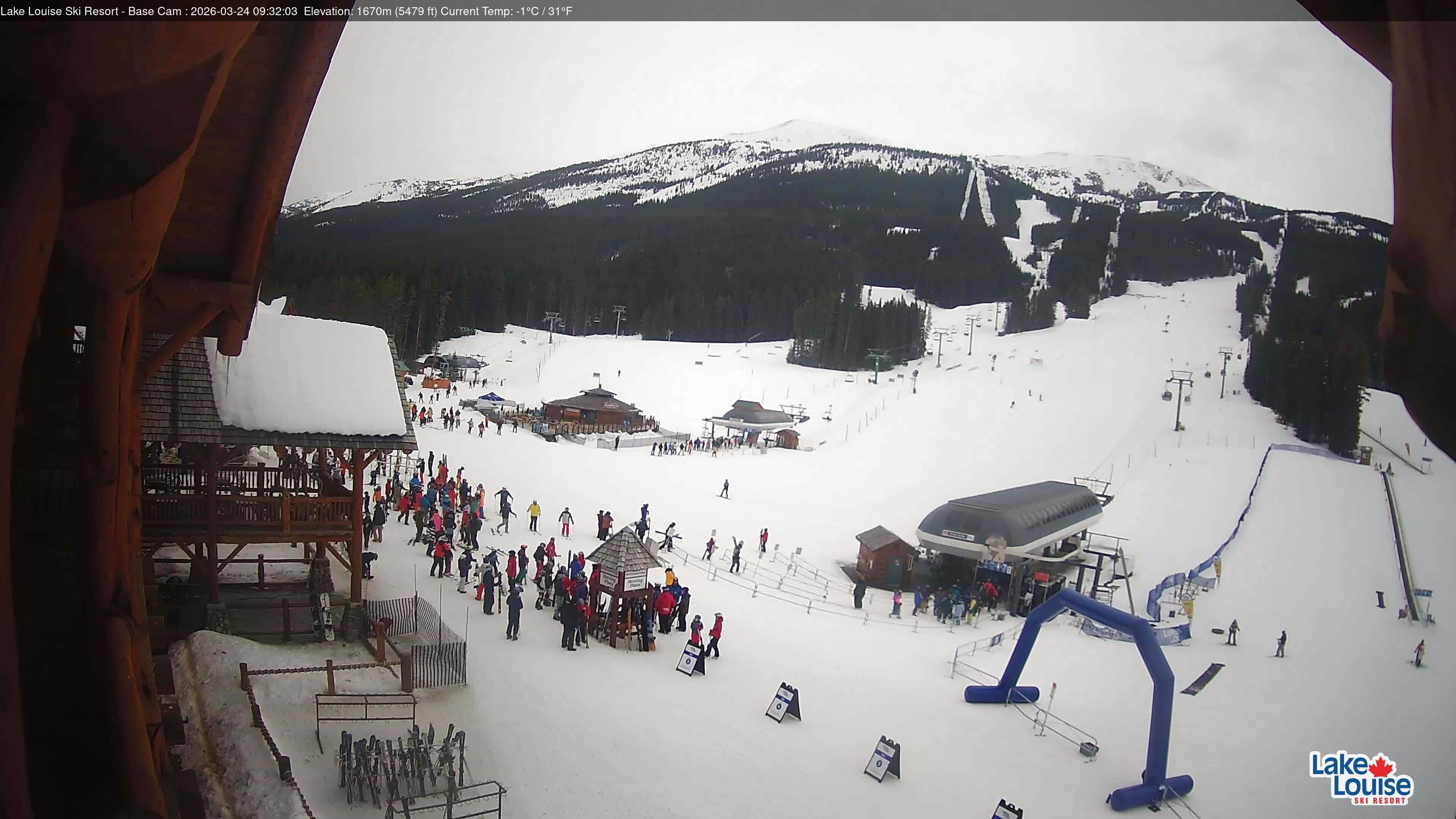 Archived webcam image showing Base Area Lake Louise on 24 Mar 2026 at 14:36 05:00
