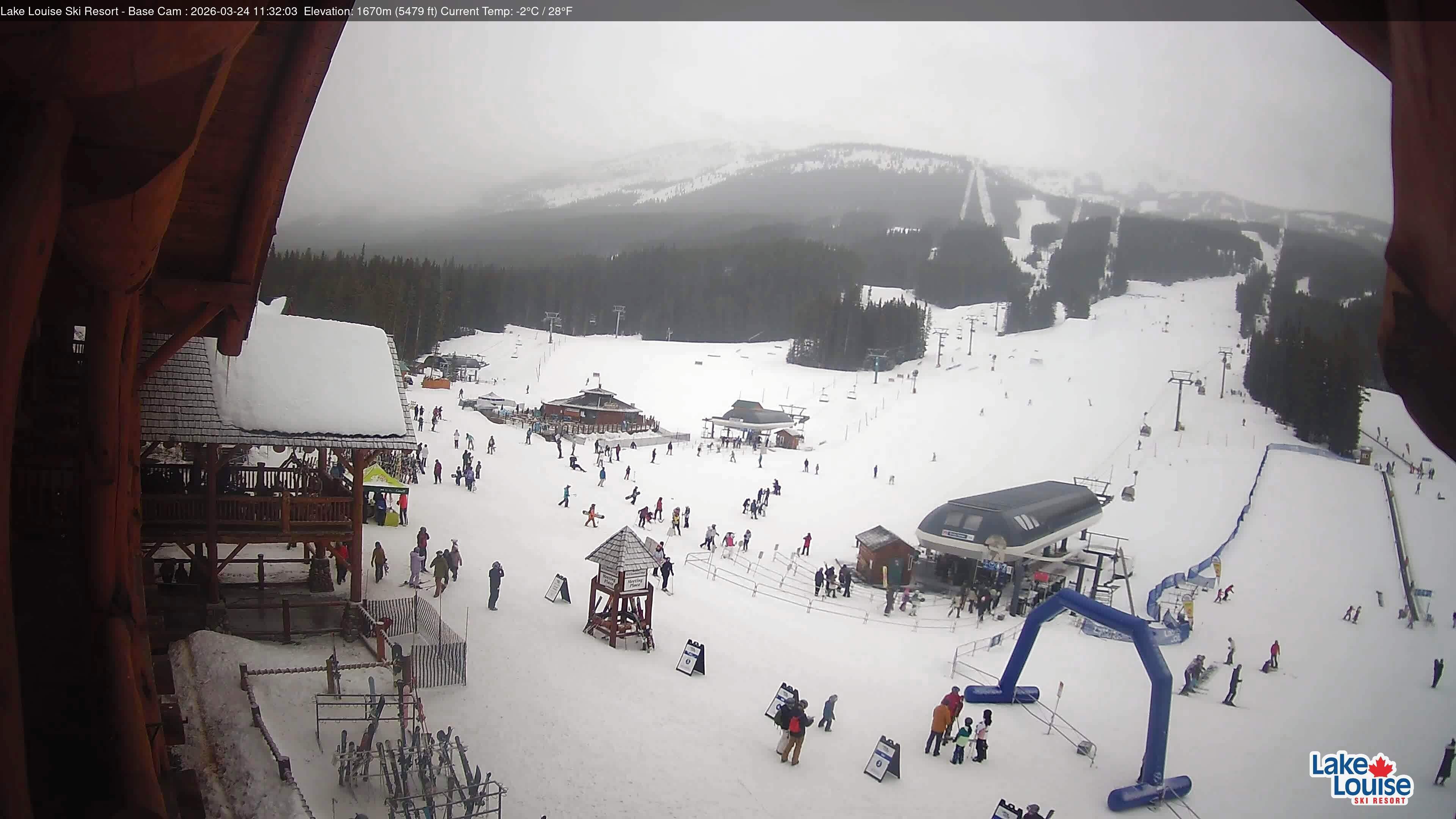 Archived webcam image showing Base Area Lake Louise on 24 Mar 2026 at 12:36 03:00
