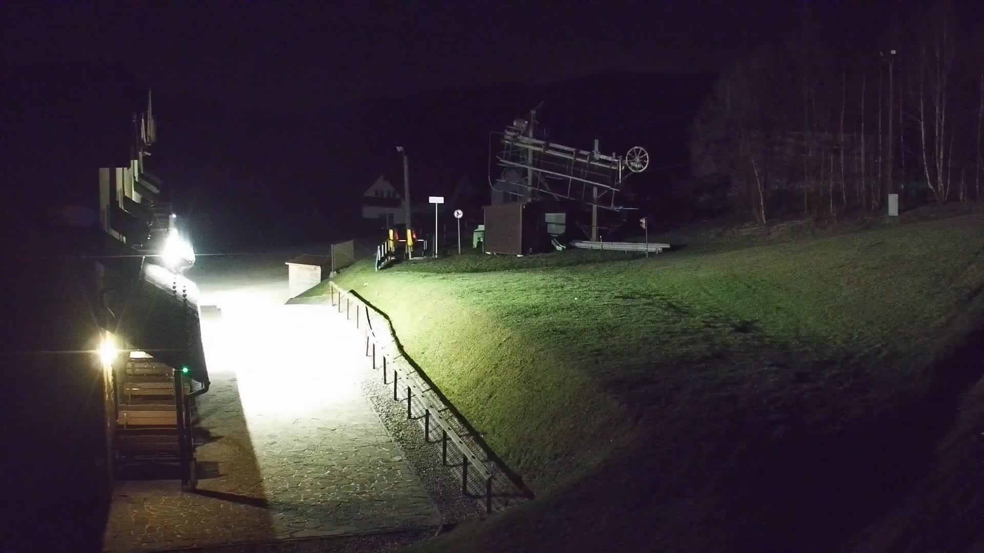 The webcam is located at the base station of the chairlift in the Laskowa ski area. The camera rotates and shows pictures of the chairlift, piste no. 1 and the Trawers restaurant.