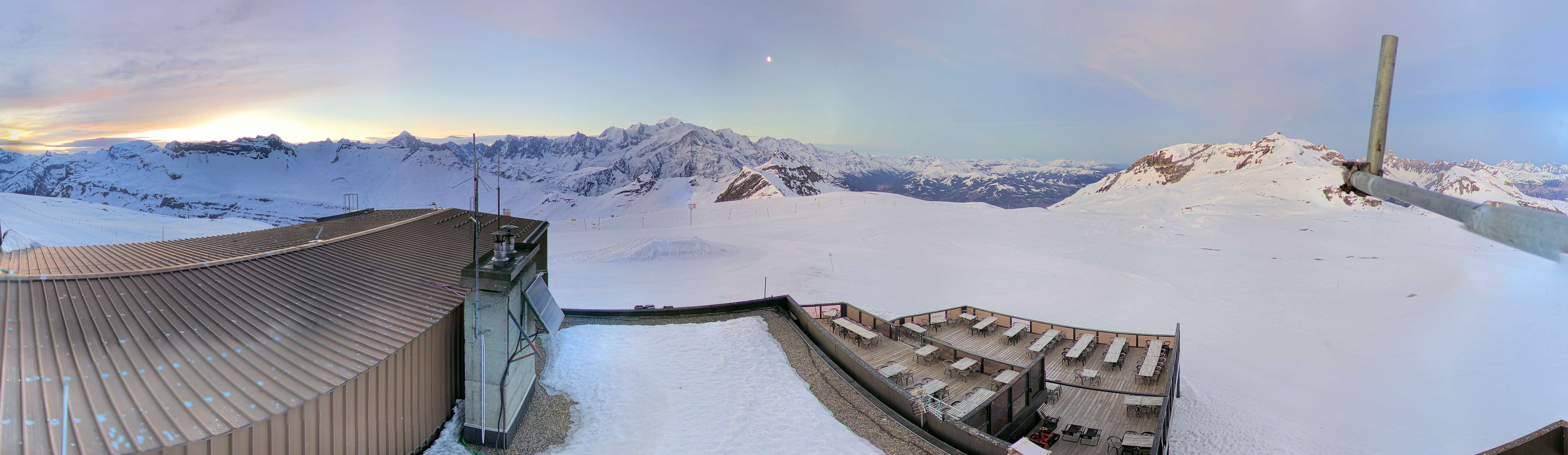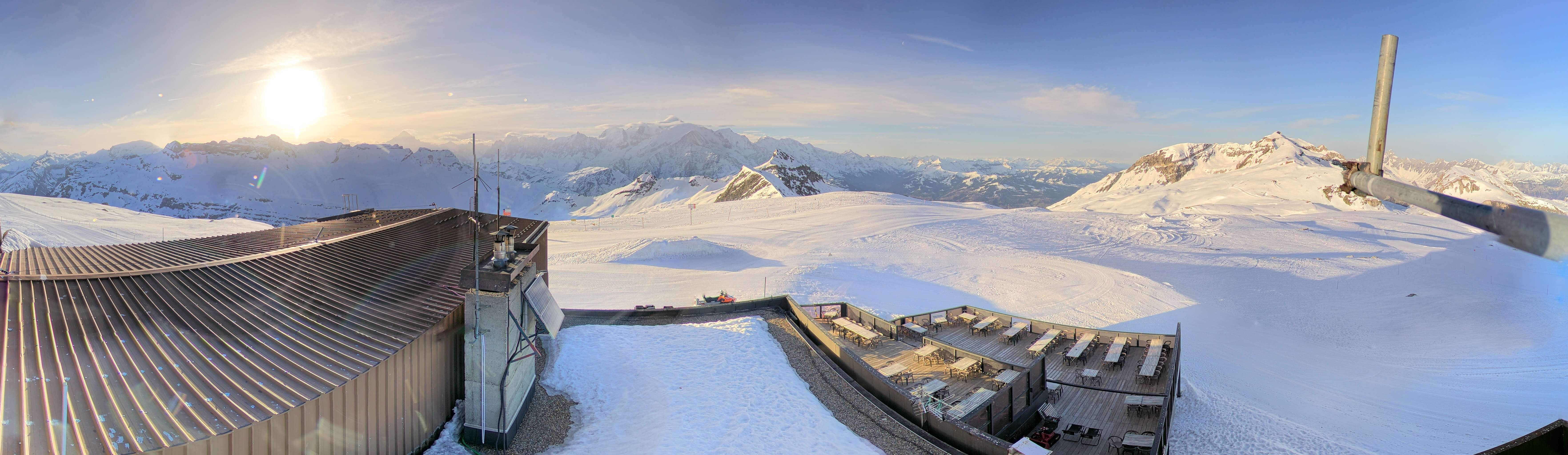 The webcam shows the view at the Grandes Platières in the french ski resort Flaine.