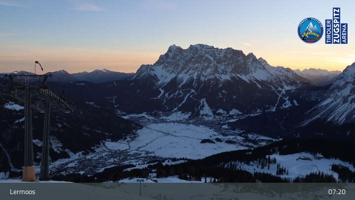 Archived webcam image showing Lermoos Grubigstein Ski Resort: Grubig II Gondola on 26 Feb 2026 at 05:15 04:00