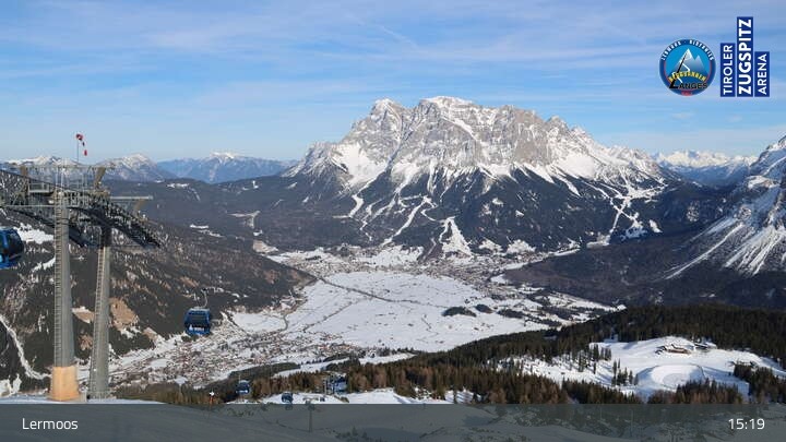 Archived webcam image showing Lermoos Grubigstein Ski Resort: Grubig II Gondola on 26 Feb 2026 at 15:15 Latest