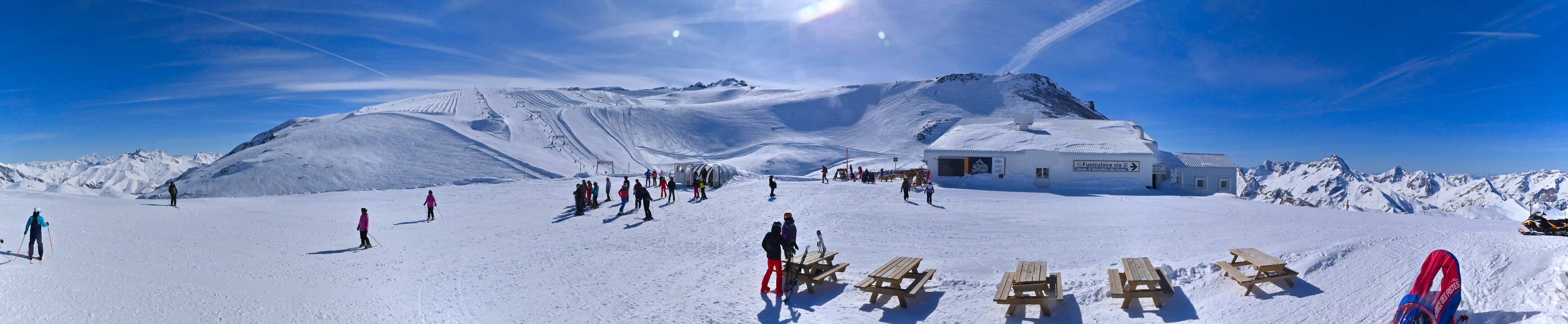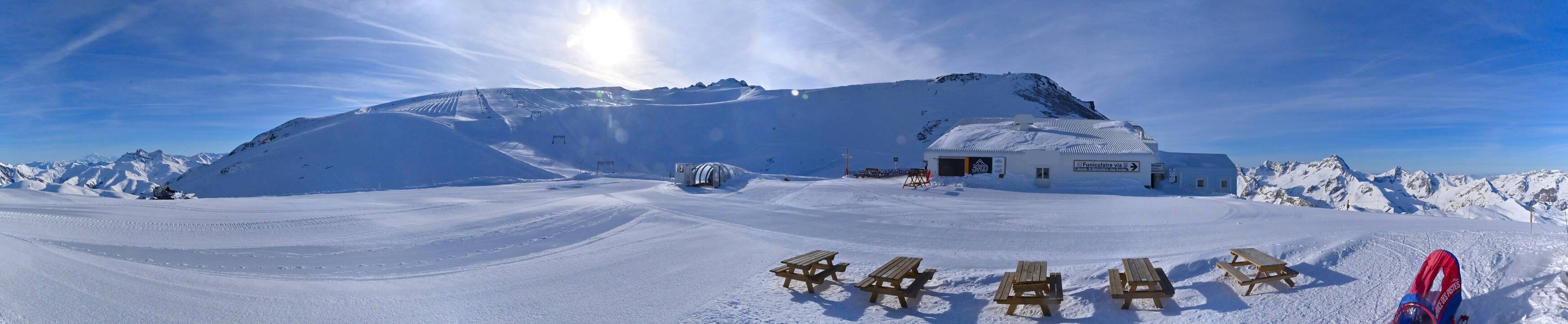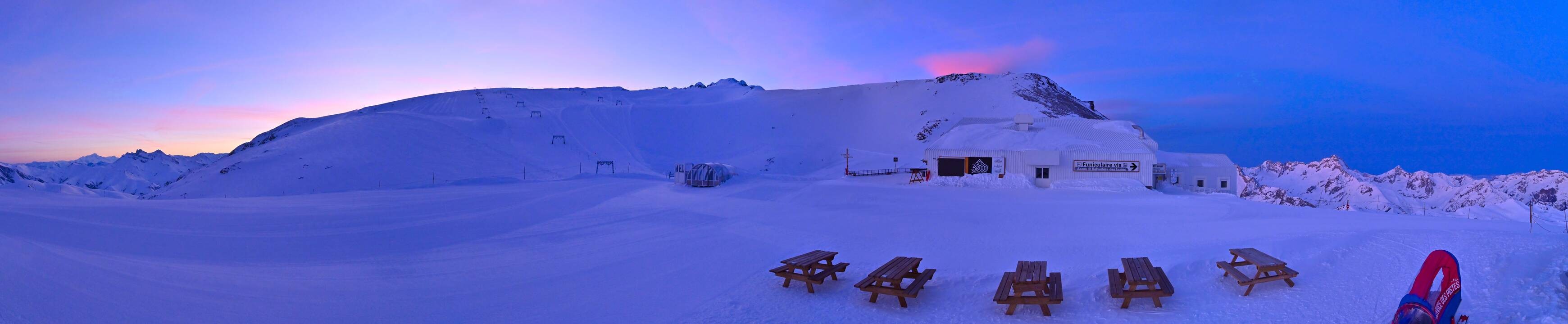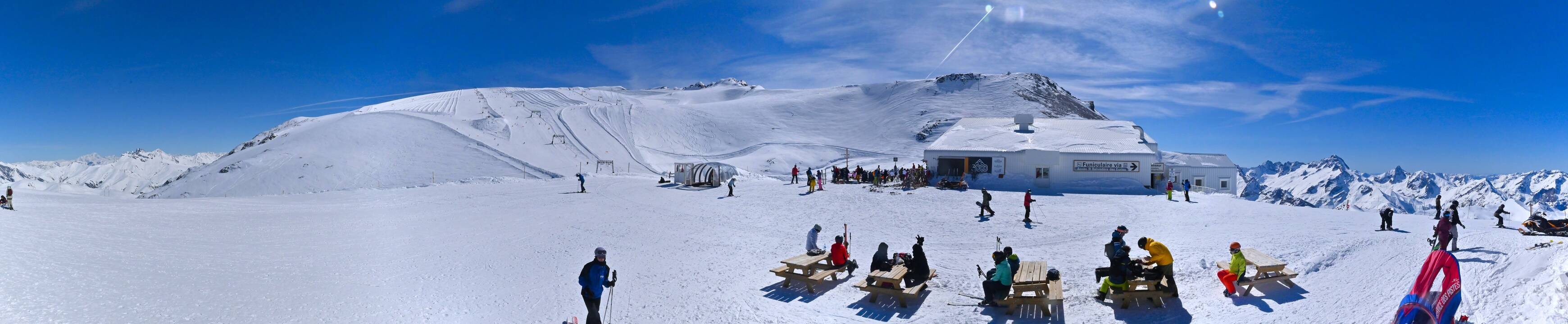This webcam is located at the top station of chairlift Glacier at 3.200 meter. It offers the view towards the t-bar lifts Puy-Salie I+II and towards the restaurant Les Glaciers in the french ski resort Les Deux Alpes (Isère).