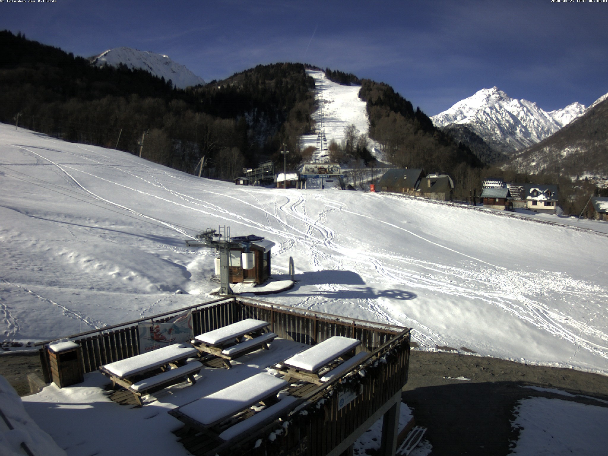 Archived webcam image showing Saint Colomban des Villards (Les Sybelles) on 28 Mar 2026 at 06:54 05:00