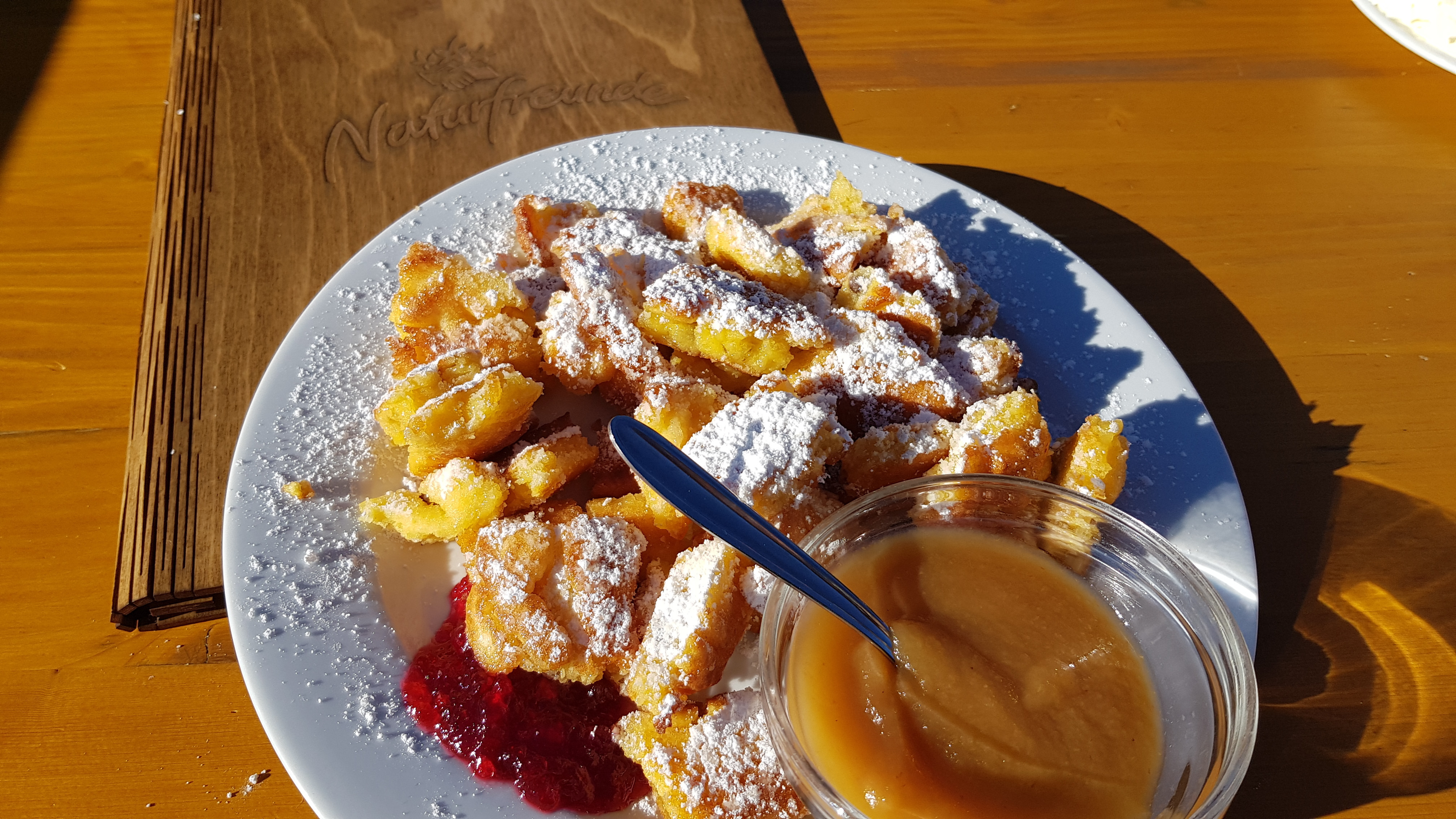 At Hochstein, the terrace of the Moosalm at the middle station invites you to eat dumplings. The Stern-Alm at the top station of the double chairlift offers a great view of the Lienz Dolomites and various soup variations. The most beautiful view on the Zettersfeld is certainly from the Steinermandlhütte. It is famous for its Schlipfkrapfen. A rustic terrace, where there is also après-ski with live music, awaits you at Mecki's Dolomiten Panoramastubn. We particularly liked the Naturfreundehütte and its Kaiserschmarrn terrace. Although it's a bit off the slopes, it's easy to get to via a side trail from the Faschingalm downhill run. The Kaiserschmarrn here is really a dream and absolutely worth the little detour! The prices in the ski huts are very family-friendly, an absolute plus in the ski region of Lienz in East Tyrol.