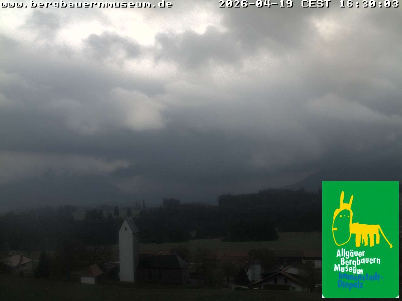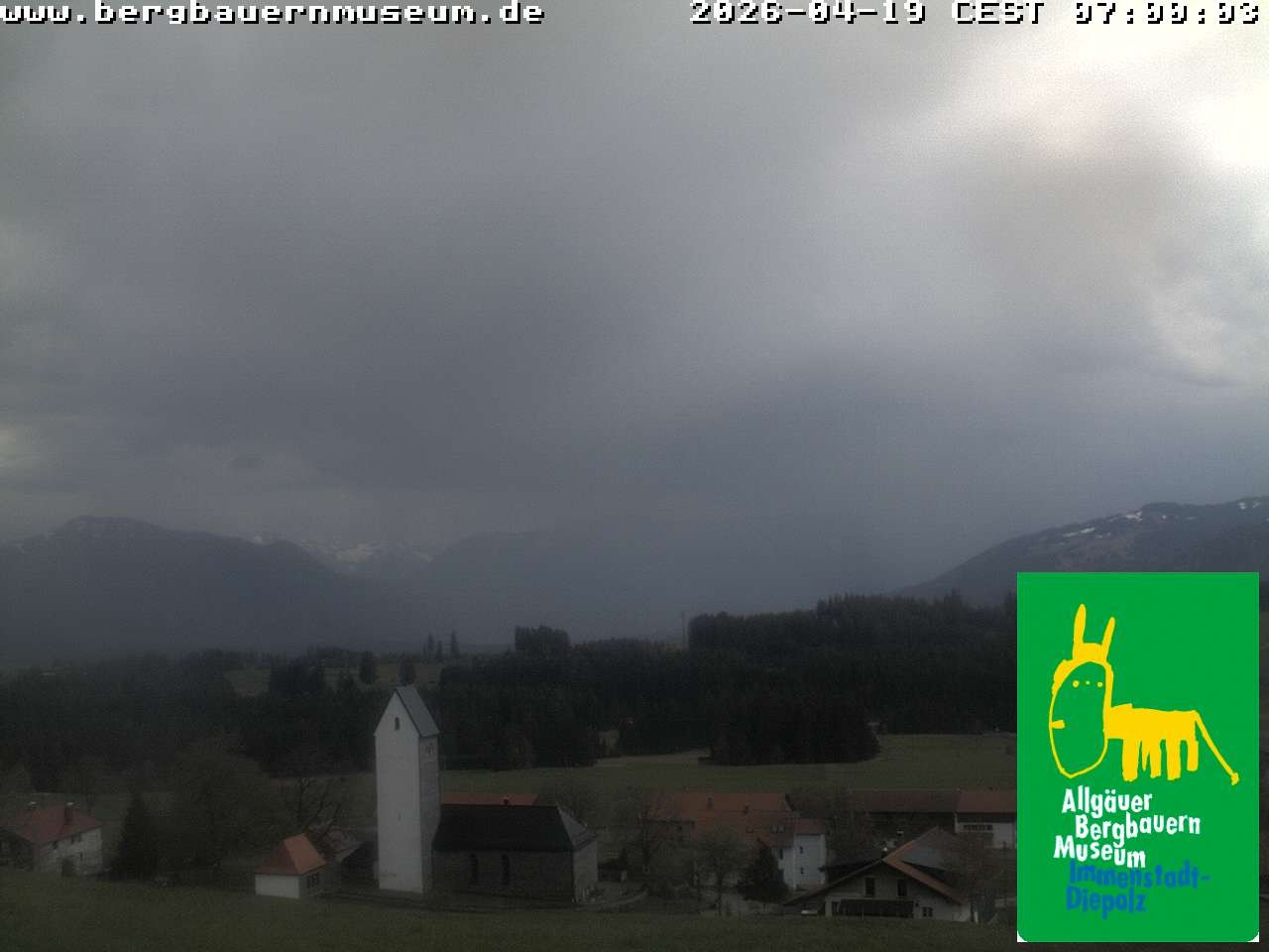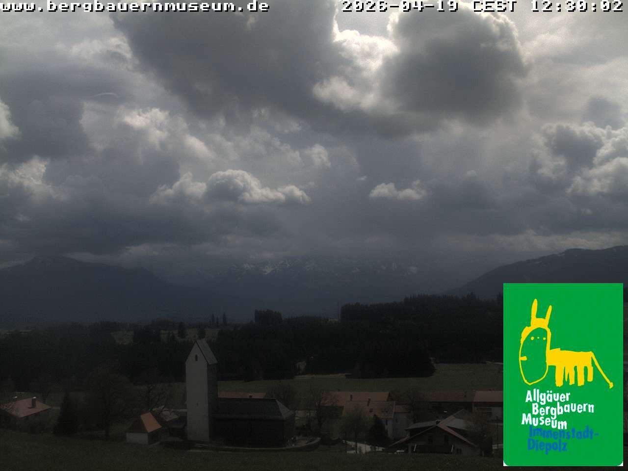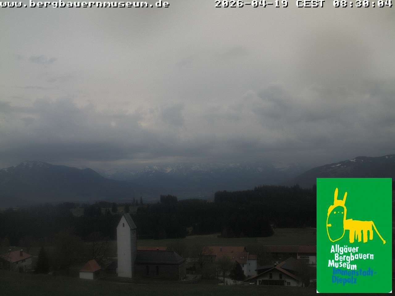 The webcam offers the view from alpine hut “Höfleaple“ that is located in the Museum of Mountain Farming in Diepolz (Allgäu). It shows the village Diepolz and the Allgäu Alps. The Höflealpe hosts an exhibition about the ancient work in the forest and provides information about poachers.