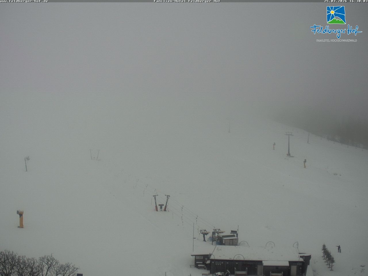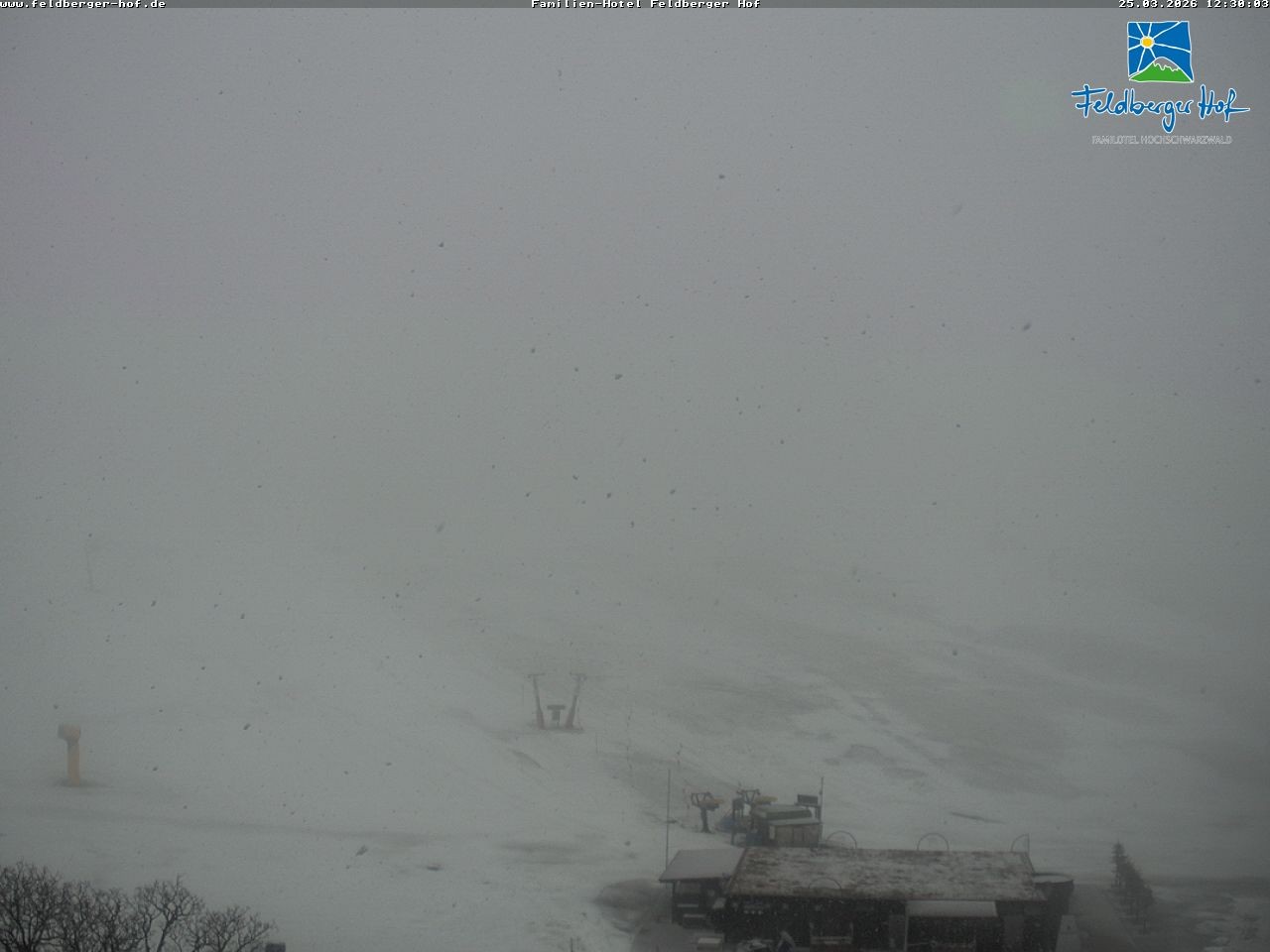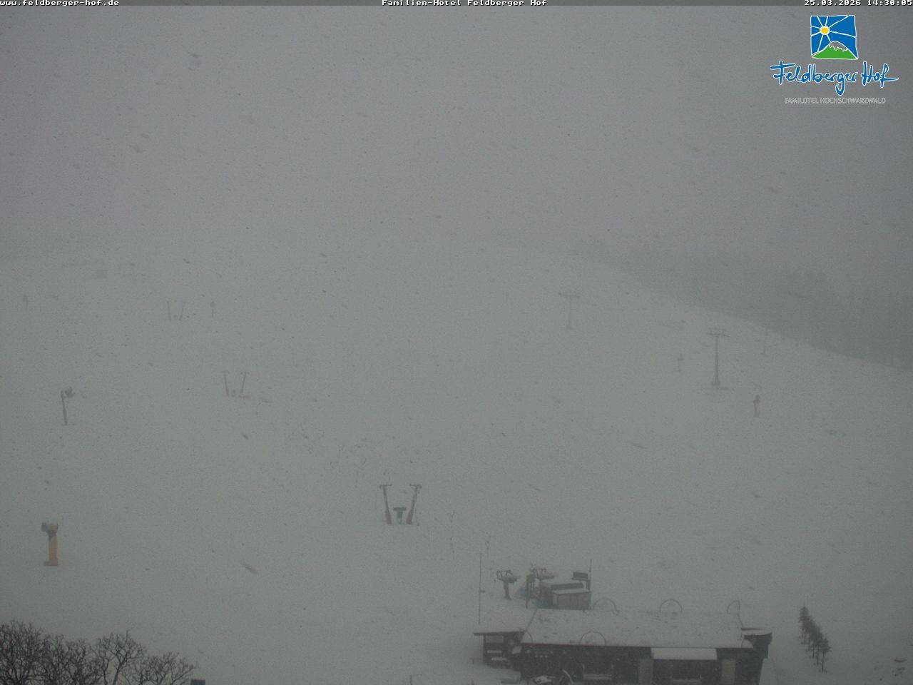 Have a look at the slopes in the Feldberg Ski Resort in the Black Forest region. The webcam is located at the family hotel Feldberger Hof.