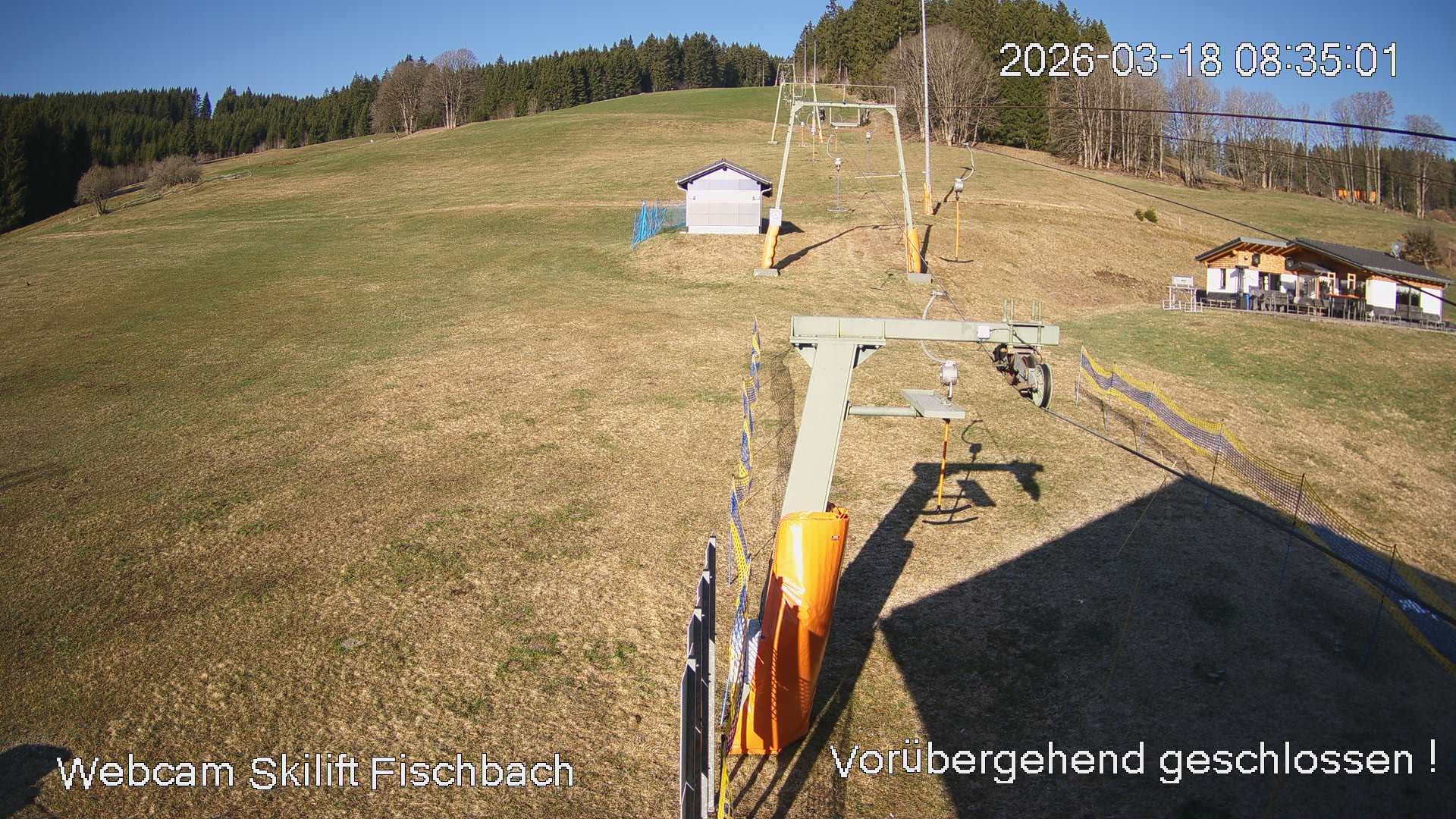 This webcam is located at the small ski area of Fischbach in the Black Forest. You can see the t-bar lift and the slope, which is perfect to do the first moves in winter.