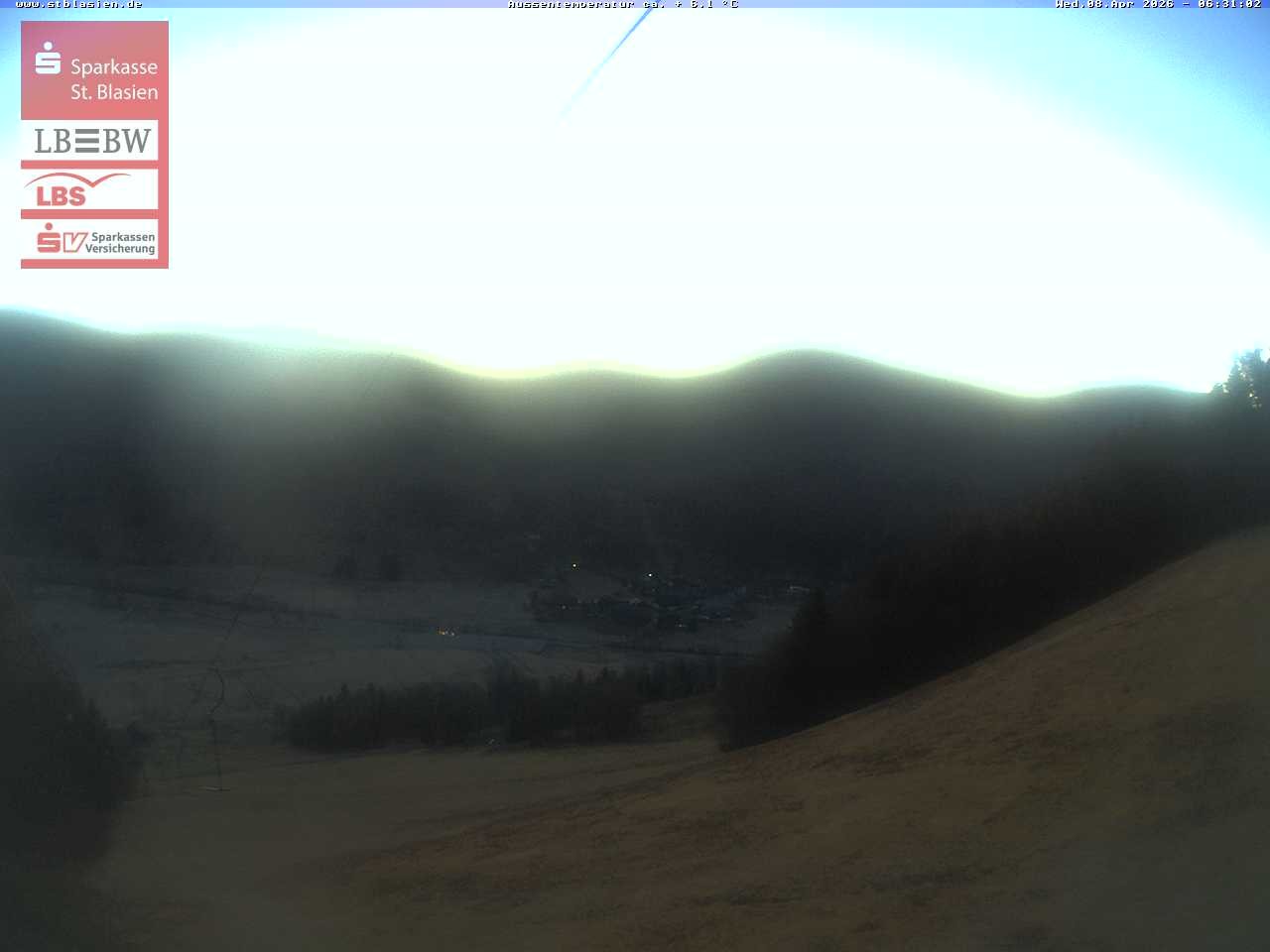Archived webcam image showing Menzenschwand, top station Moesle on 8 Apr 2026 at 06:18 05:00