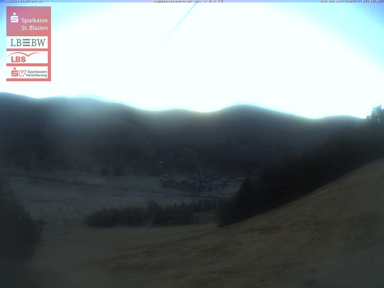 Archived webcam image showing Menzenschwand, top station Moesle on 8 Apr 2026 at 07:18 06:00