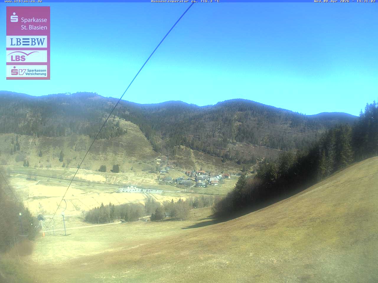 Archived webcam image showing Menzenschwand, top station Moesle on 8 Apr 2026 at 14:18 Latest