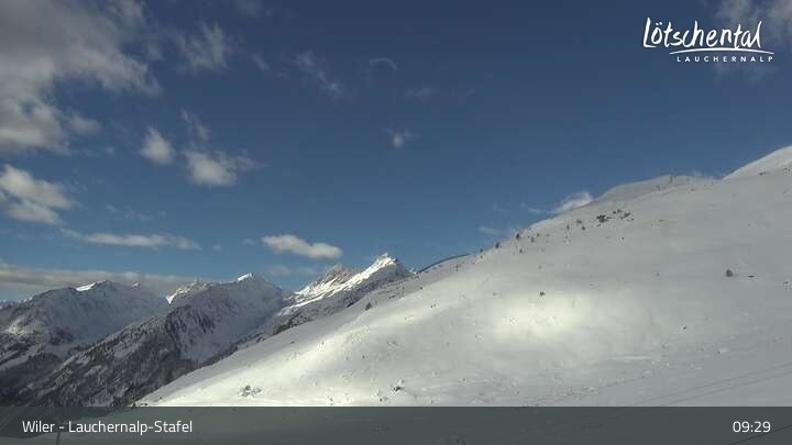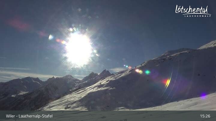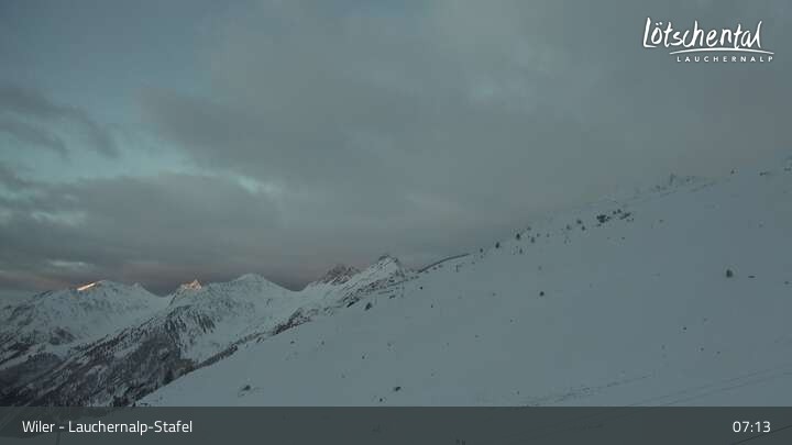 This webcam in the Lötschental Lauchernalp ski resort in the canton of Valais in Switzerland is located at the Stafel Station.