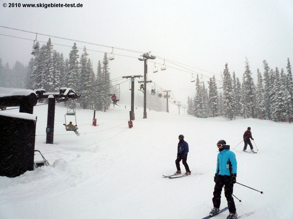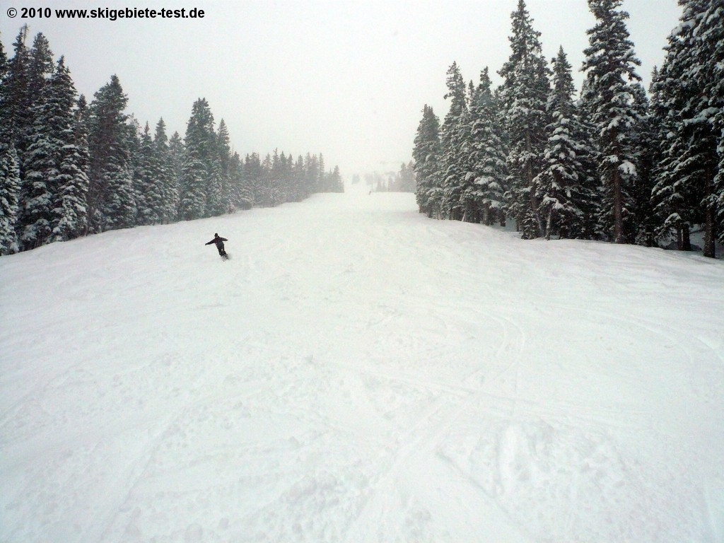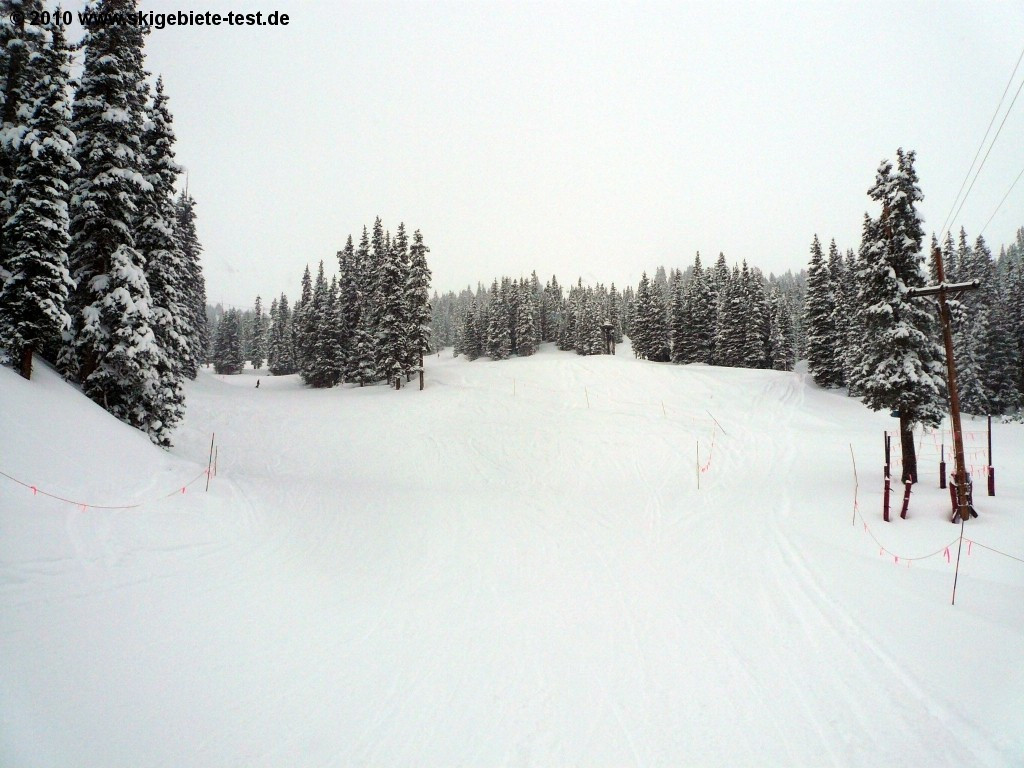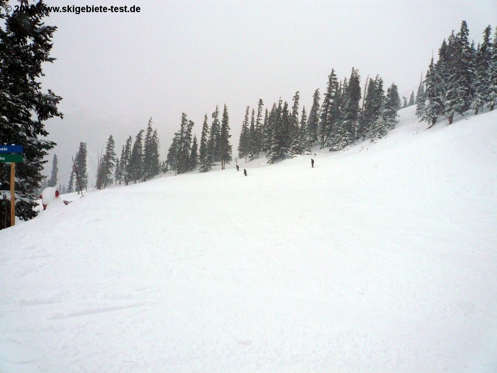 Only 13 % of Loveland`s terrain is of easy level. Definitely not a lot! However Loveland can still score in the beginner category. In “Loveland Valley” (see trial map) a separate practicing slope featuring a slow double chair lift is the perfect facility for an easy and convenient introduction to snow-sports. The local ski school is also located in “Loveland Valley” and offers half-day classes for young and old. The gentle slopes "Catwalk", "Mambo", "Turtle Creek" and "Creek Trail" are strewn across the resort. Advantage: beginners see the entire resort. Disadvantage: beginners must also conquer intermediate level terrain in order to get to the gentle slopes. Those that have stood on skis before should be able to also ski the intermediate terrain (earmarked blue). The trails at “Chair 6” are relatively flat and especially less skilled skiers are to be found there. Compared to other resorts in Colorado, Loveland offers great price performance ratio. Especially beginners are often not willing to pay a fortune for lift-tickets as they can anyhow not tap the whole potential of a ski resort. If Loveland featured more beginner friendly terrain they would have certainly obtained better results in the beginner category.