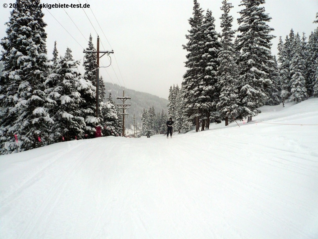 Loveland is without doubt a low(er) priced possibility to spend a family skiing holiday in the Rocky Mountains. Prises for lift-tickets as well as food and beverages are among the least expensive in the Colorado ski resorts! The local ski school in “Loveland Valley” offers numerous day-care programmes – needless to say… for a fair price, so parents can spend care-free days exploring Loveland`s intermediate (blue) and challenging (black) terrain. If families want to spend the day on the slopes together it is recommendable that the kids dispose of at least the basic skiing or boarding skills (only 13% of Loveland`s terrain is classifies as “easy”). Loveland unfortunately lacks a kids park and magic carpet lift. However excellent terrain for undertaking “first steps” on skis or board is the practicing slope at “Chair 7”. But keep in mind that kids should be accompanied by parents or a skiing instructor when using the chair lift that takes the “newcomers” up and around the slope. Due to the reasonable prices and the excellent programmes offered by the local ski school we award Loveland with 4 out 5 stars in the “Family Category”!