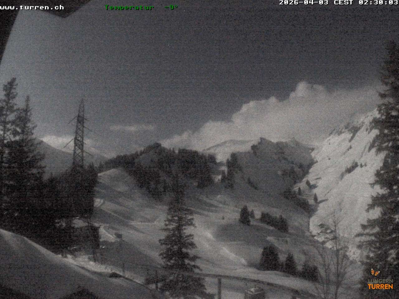 Archived webcam image showing Lungern-Turren-Bahn on 3 Apr 2026 at 02:24 01:00