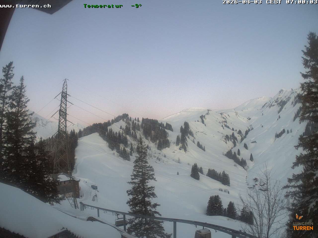 Archived webcam image showing Lungern-Turren-Bahn on 3 Apr 2026 at 06:24 05:00