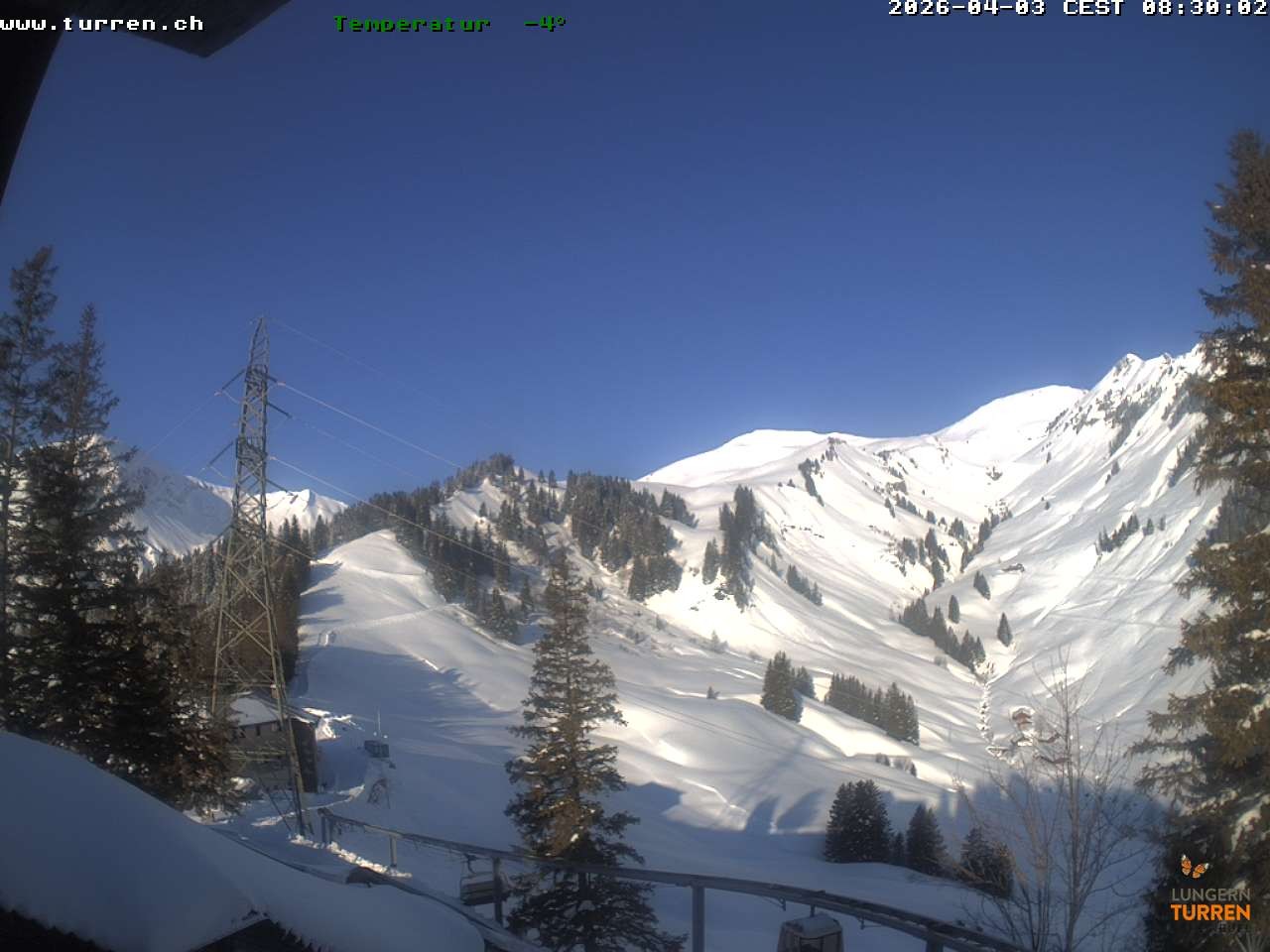 Archived webcam image showing Lungern-Turren-Bahn on 3 Apr 2026 at 08:24 07:00