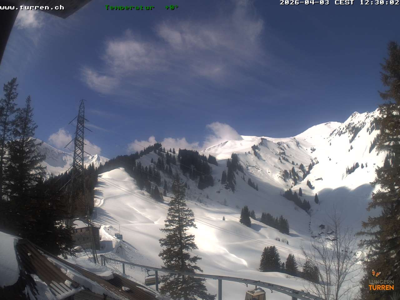Archived webcam image showing Lungern-Turren-Bahn on 3 Apr 2026 at 12:24 11:00