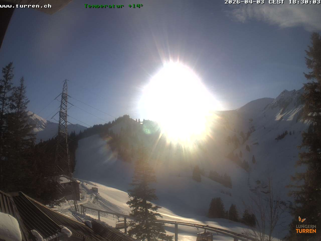 Archived webcam image showing Lungern-Turren-Bahn on 3 Apr 2026 at 18:24 17:00
