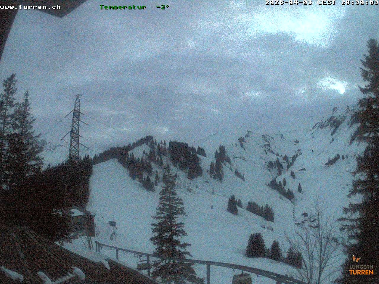 Archived webcam image showing Lungern-Turren-Bahn on 3 Apr 2026 at 20:24 Latest