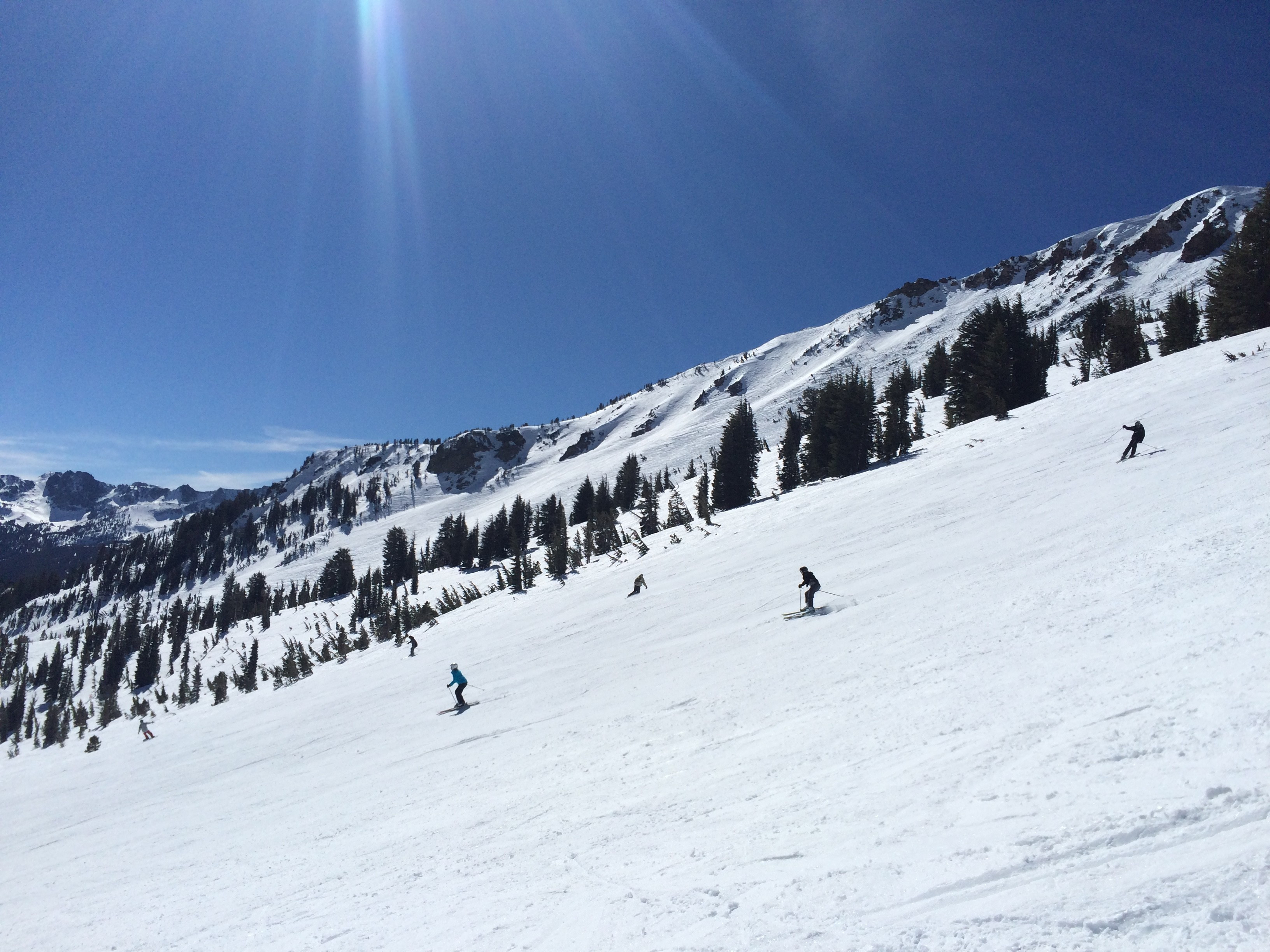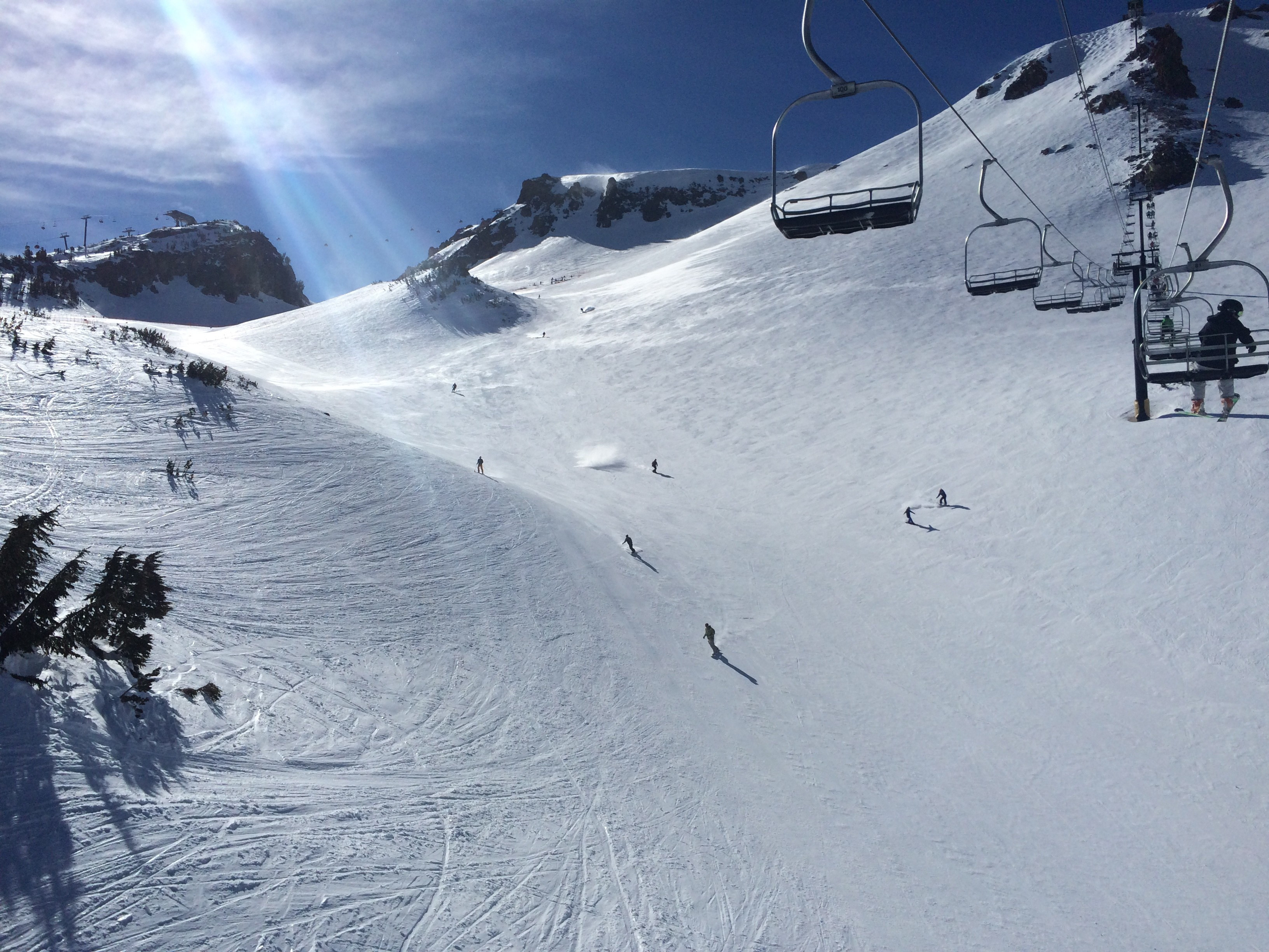 While the highest part of the mountain around the Top of the Sierra almost exclusively feeds very difficult trails, the middle section of the mountain between the Cloud Nine Express in the south and the Broadway Express in the north-east is dominated by numerous intermediate groomers which are perfect for carving. Our favourite runs were the Ricochet trail from the Cloud Nine Express, the Rollercoaster run from the Rollercoaster Express and Broadway from the Broadway express.