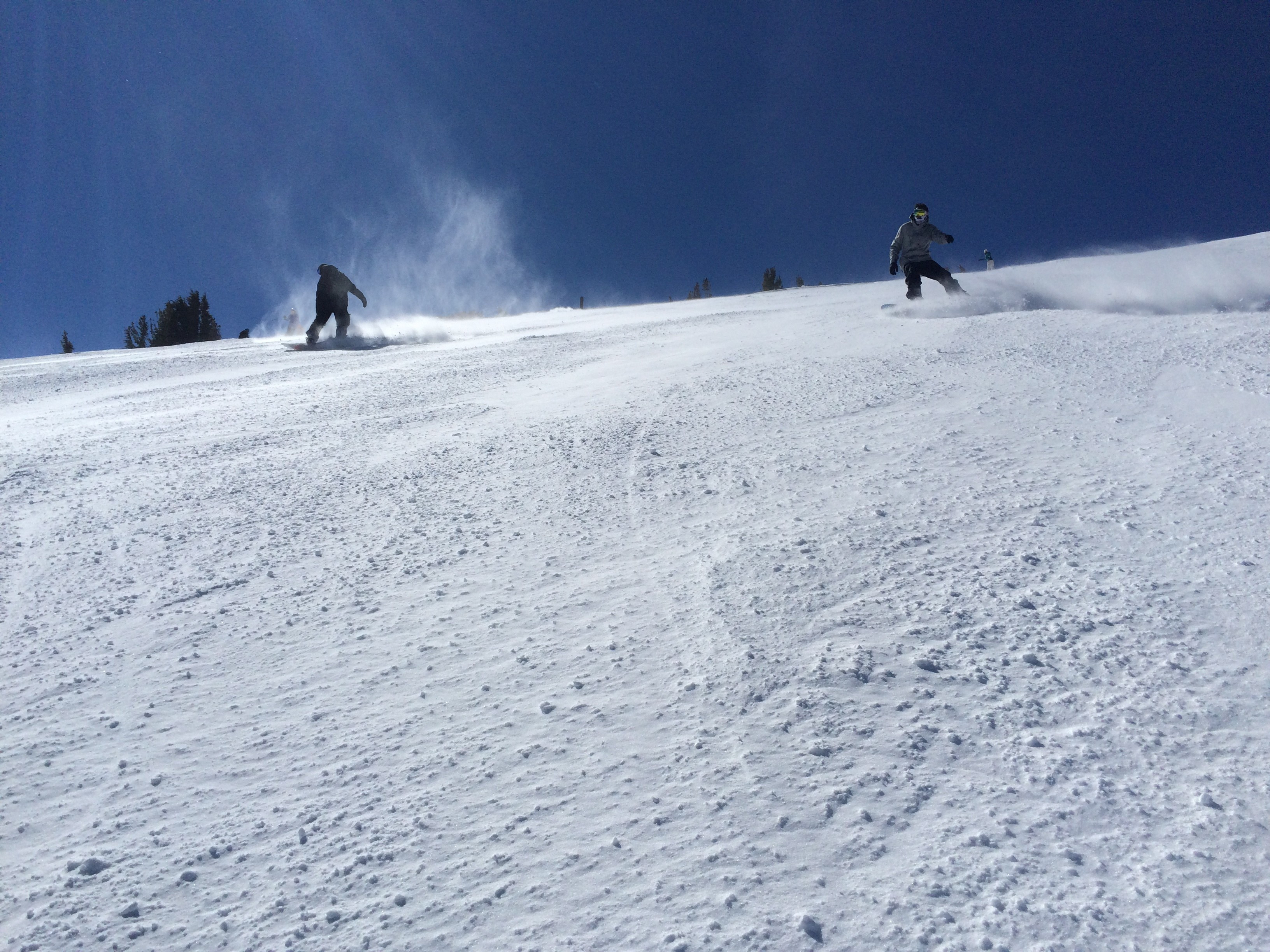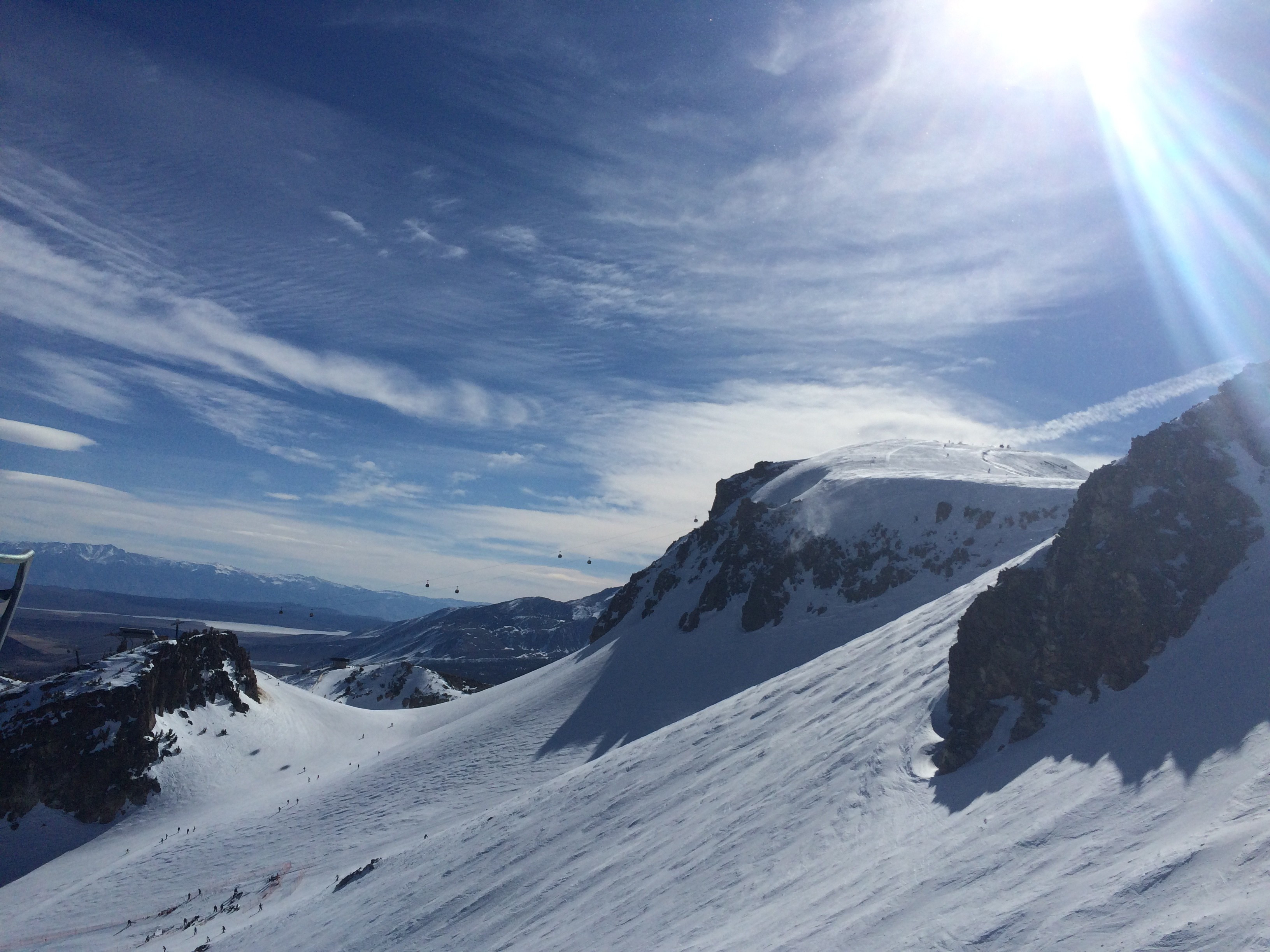 Mammoth Mountain ski area is just 200 km from the Pacific coast as the crow flies. As a result, the ski area is particularly susceptible to Pacific storms which regularly make landfall. It is not uncommon for a metre or more of new snow to fall overnight. As a result, Mammoth Mountain clocks up over 10 meters of snow during an average season! As soon as the sun rises again over the Eastern Sierras after one of these mega storms, the mogul runs Dragon’s Back, Head Chutes and Dave’s Run are the perfect place to enjoy a bluebird day.