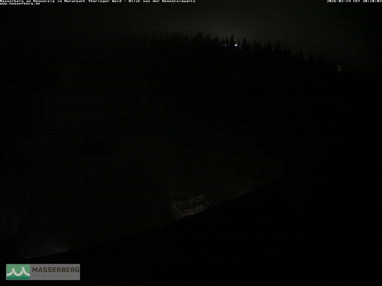 The webcam faces the Rennsteigwarte (Thuringian Forest) and the village Masserberg.