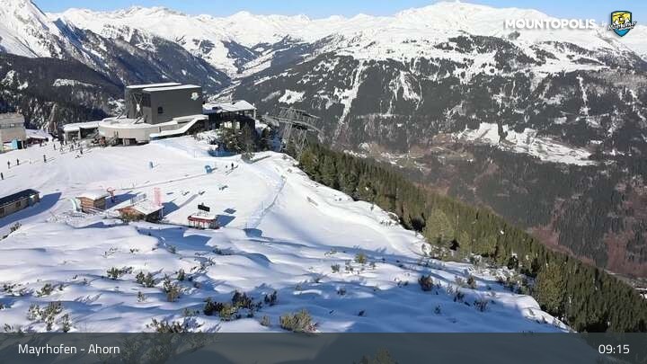 Archived webcam image showing Mayrhofen: Webcam Ahornbahn on 26 Feb 2026 at 09:24 08:00