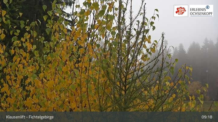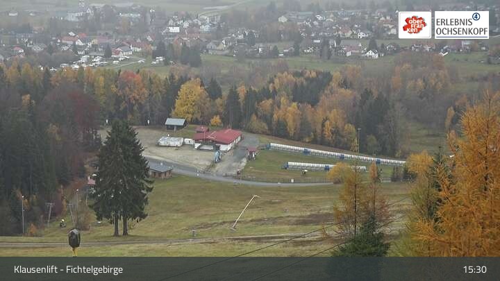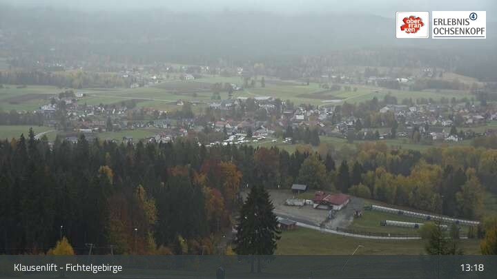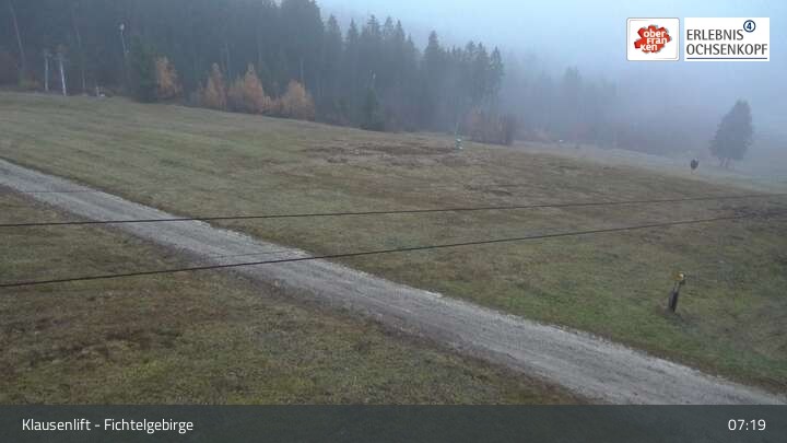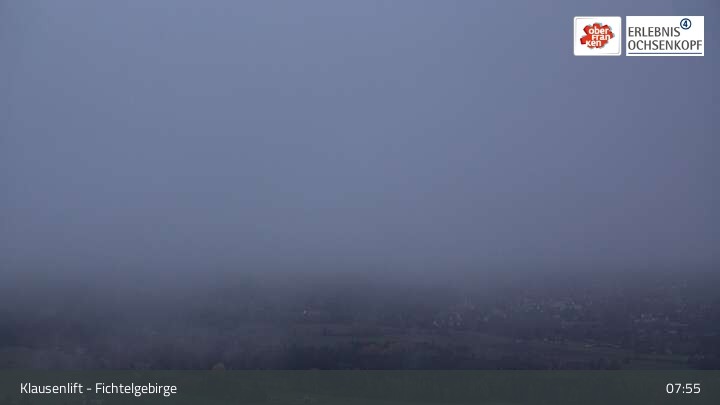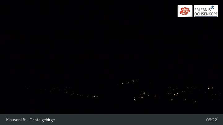 The webcam is located at the Klausen lifts in the Fichtelgebirge and looks over Mehlmeisel to Schneeberg and Ochsenkopf.