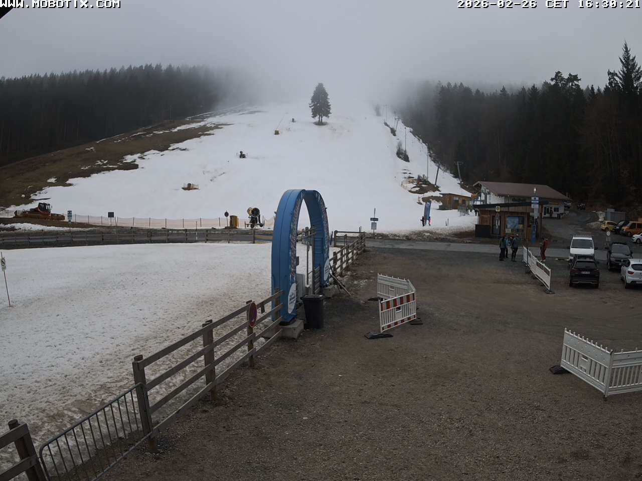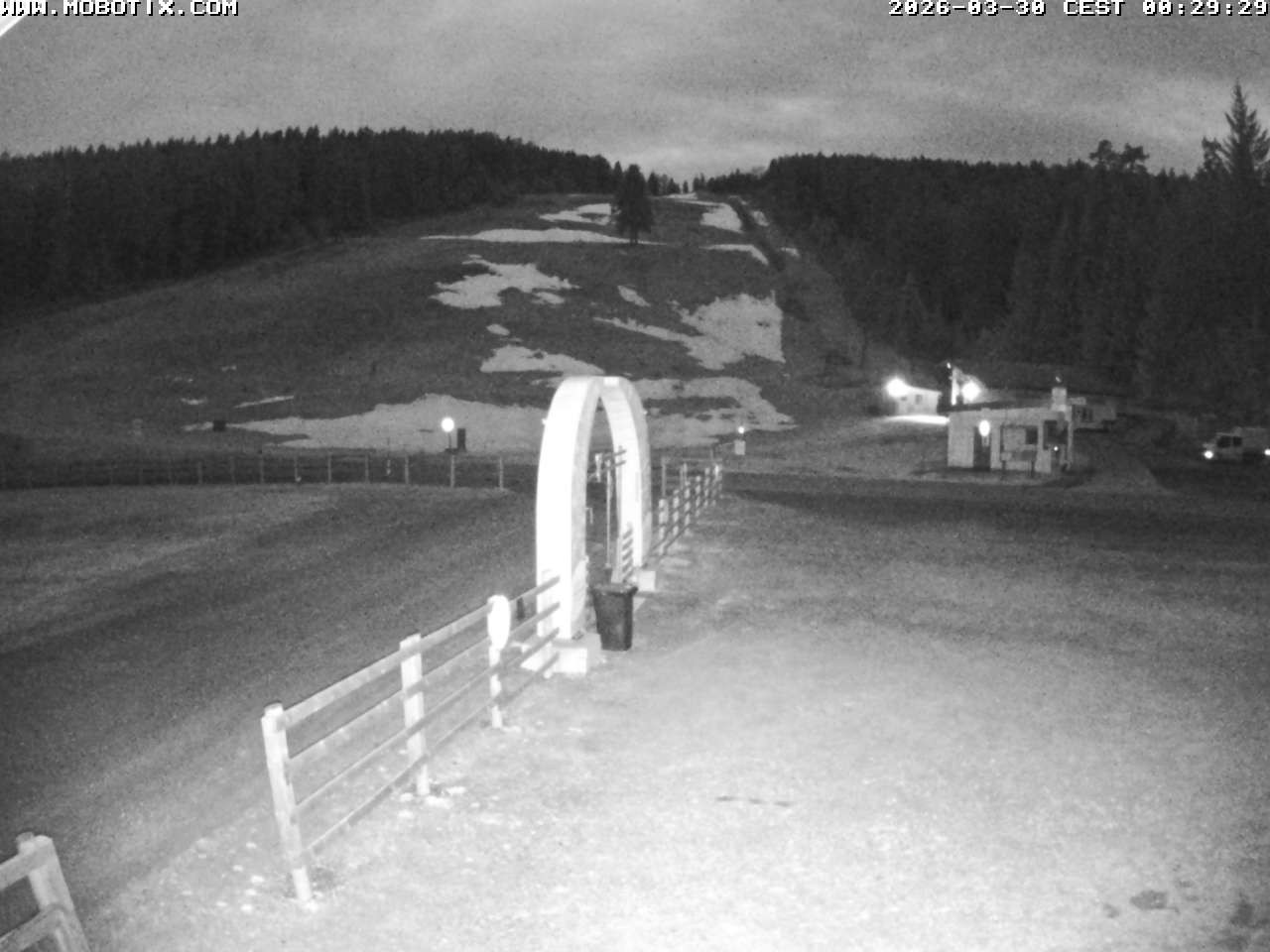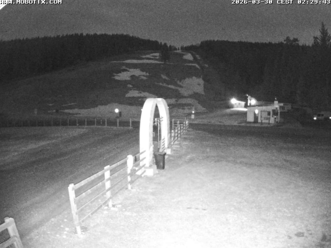 The webcam shows the parking area, two of the three ski lifts and the run at Mehlmeisel Klausenlifte.