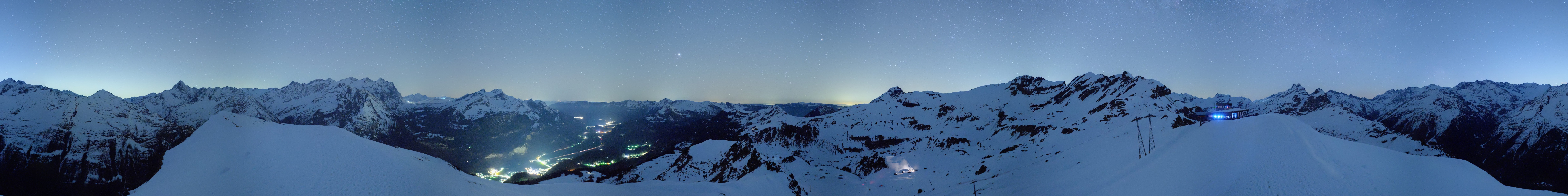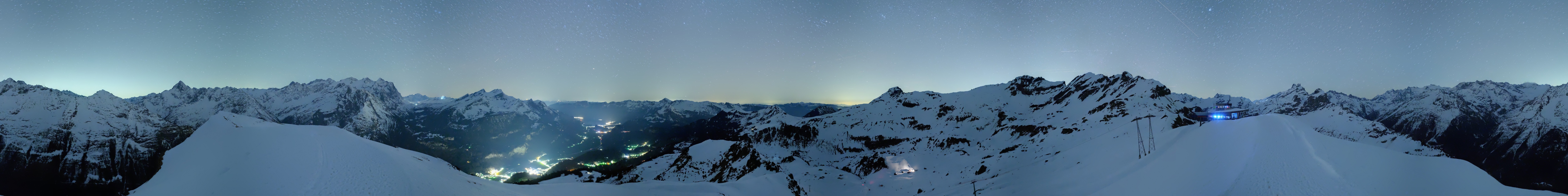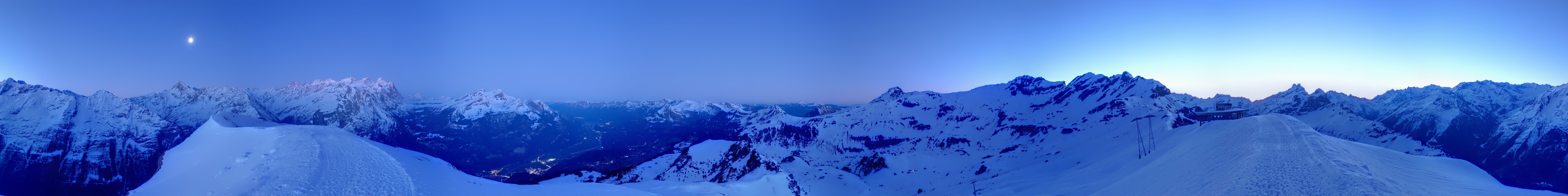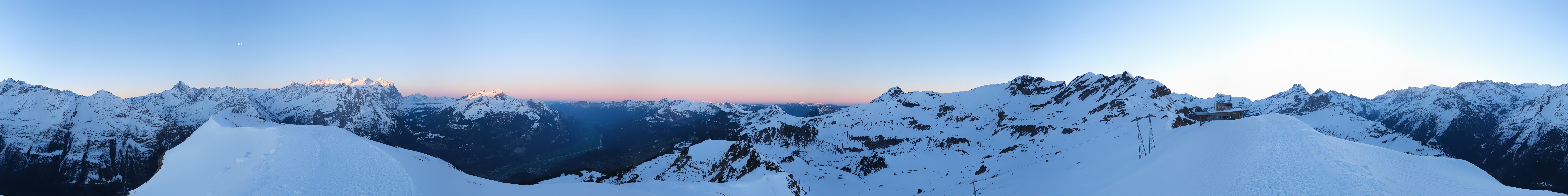 360-degree view from Alpen Tower towards Wetterhorn at Meiringen Hasliberg ski area.