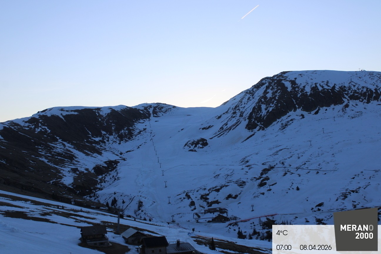 Archiviertes Webcam Bild: Meran 2000: Kirchsteigerhütte am 08.04.2026 um 07:11 Uhr 07:00