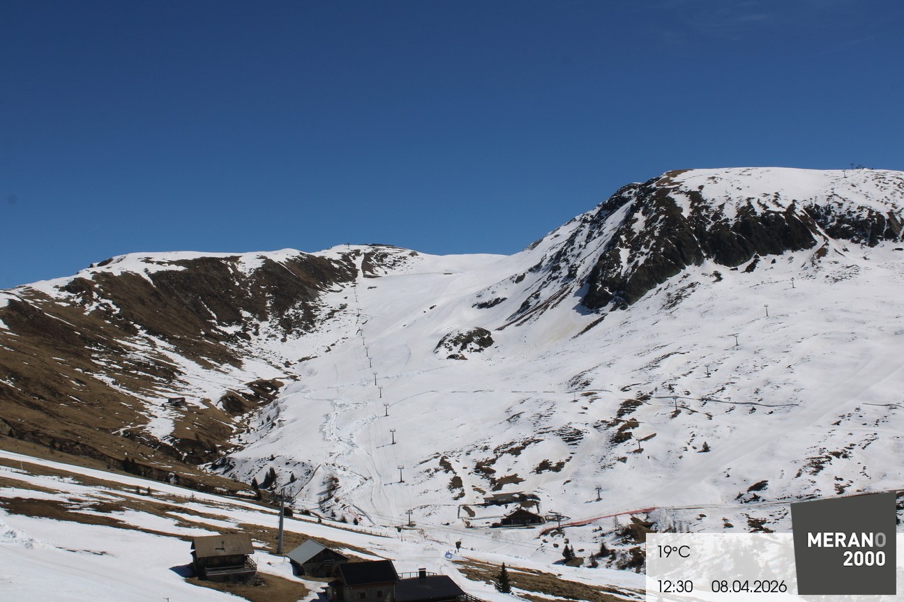 Archiviertes Webcam Bild: Meran 2000: Kirchsteigerhütte am 08.04.2026 um 12:11 Uhr 12:00