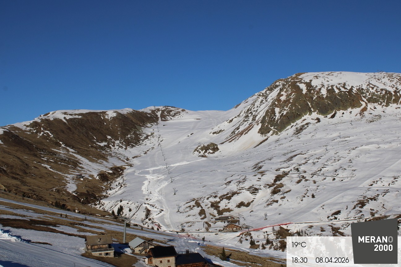 Archiviertes Webcam Bild: Meran 2000: Kirchsteigerhütte am 08.04.2026 um 18:11 Uhr 18:00