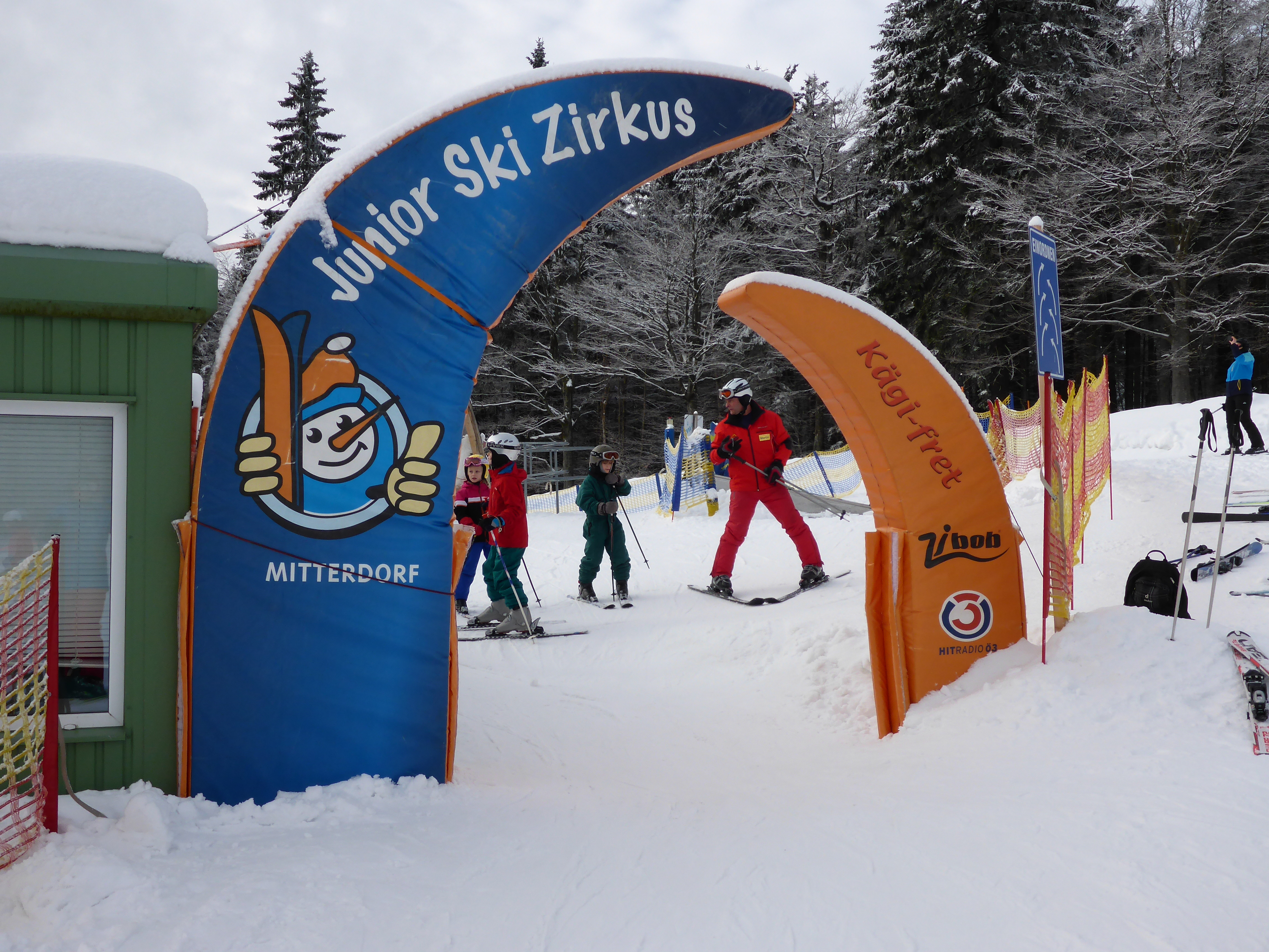 In the Junior Ski Circus at the valley station of the Almwiesen lift, the youngest children will find the ideal area for their first turns in the snow. The little skiers can expect three magic carpets for easy transport to the practice hill and a ski carousel. The professional instructors of the three ski schools help them and teach them the right technique on the screened area. The ski area also offers all-day childcare.
