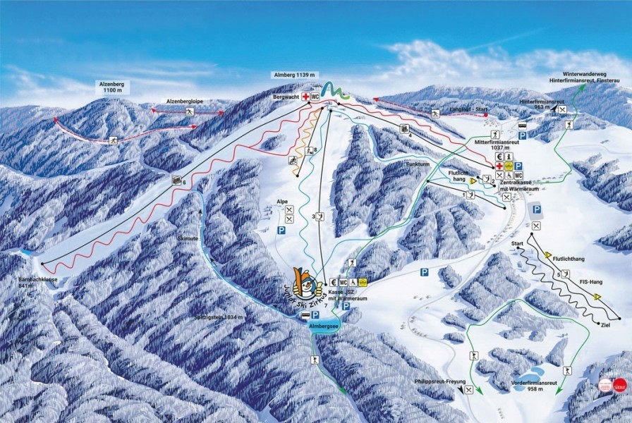 Those who dare can venture to the permanent race track (5) marked in black. It is located at the Kißlinger lift and is also illuminated several times a week.