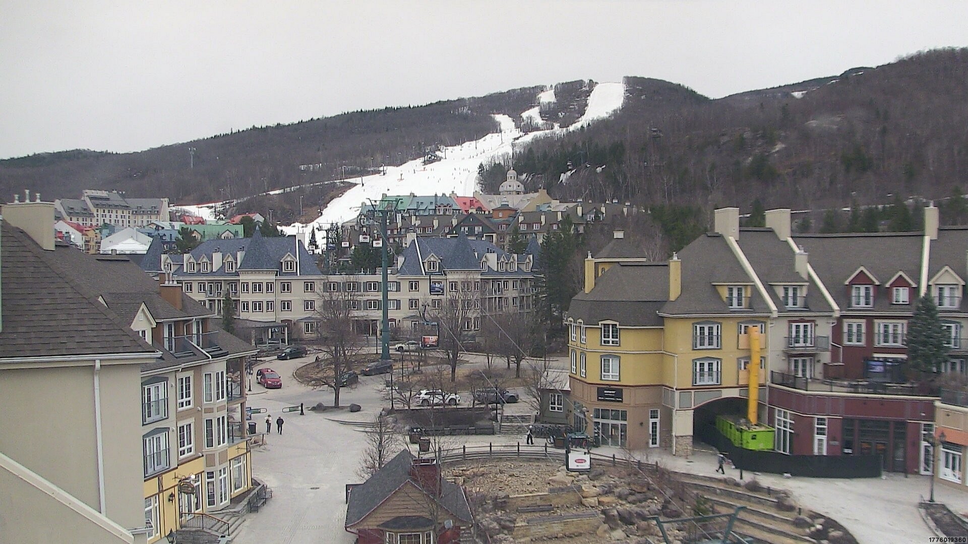 Archived webcam image showing Tremblant: Base Station Cabriolet on 12 Apr 2026 at 14:07 07:00