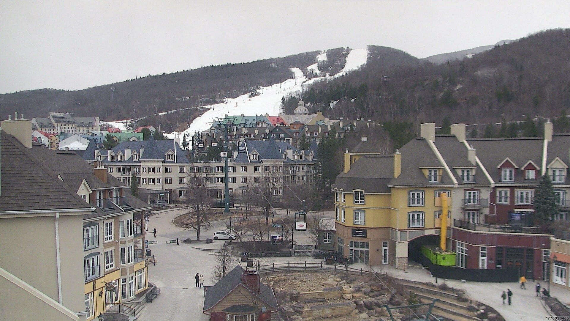 Archived webcam image showing Tremblant: Base Station Cabriolet on 12 Apr 2026 at 16:07 09:00