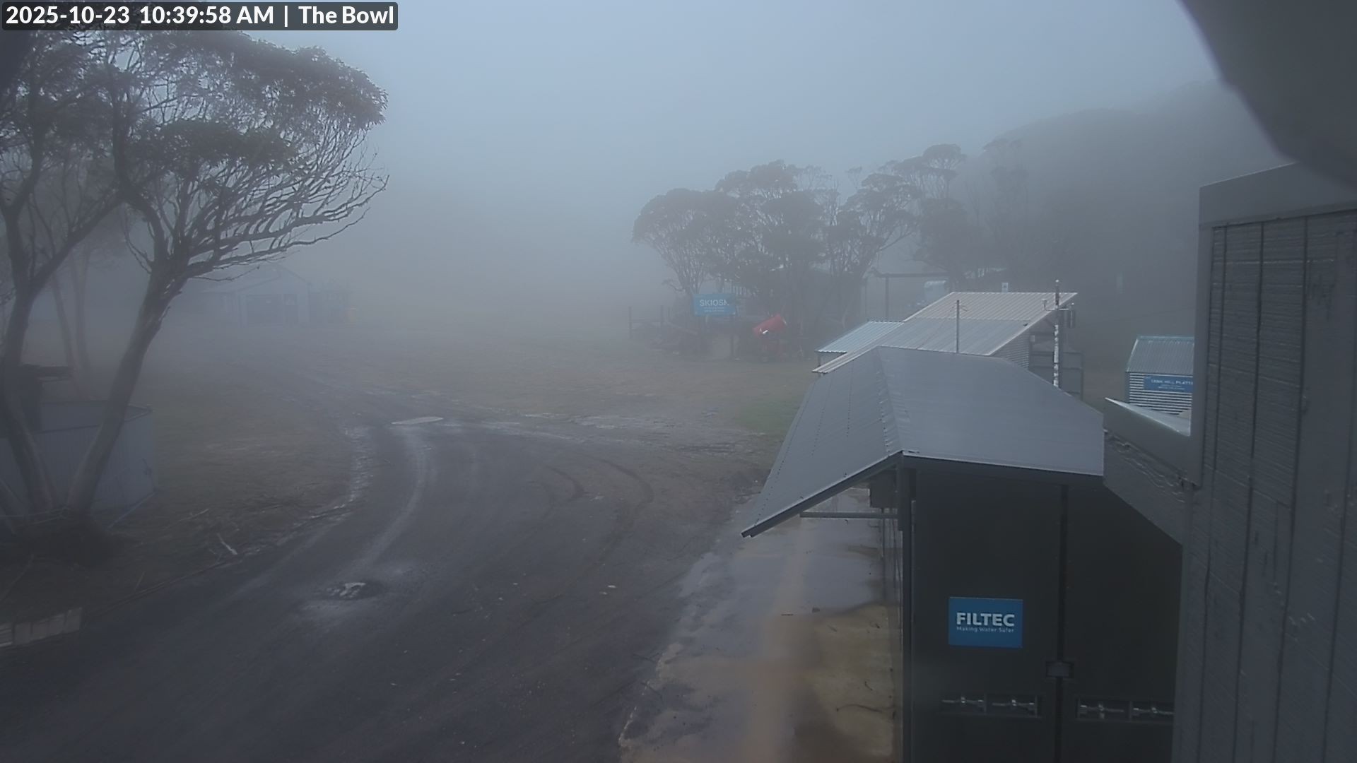 The webcam is located at the Nordic Bowl base station in the Mount Baw Baw ski resort in Australia.