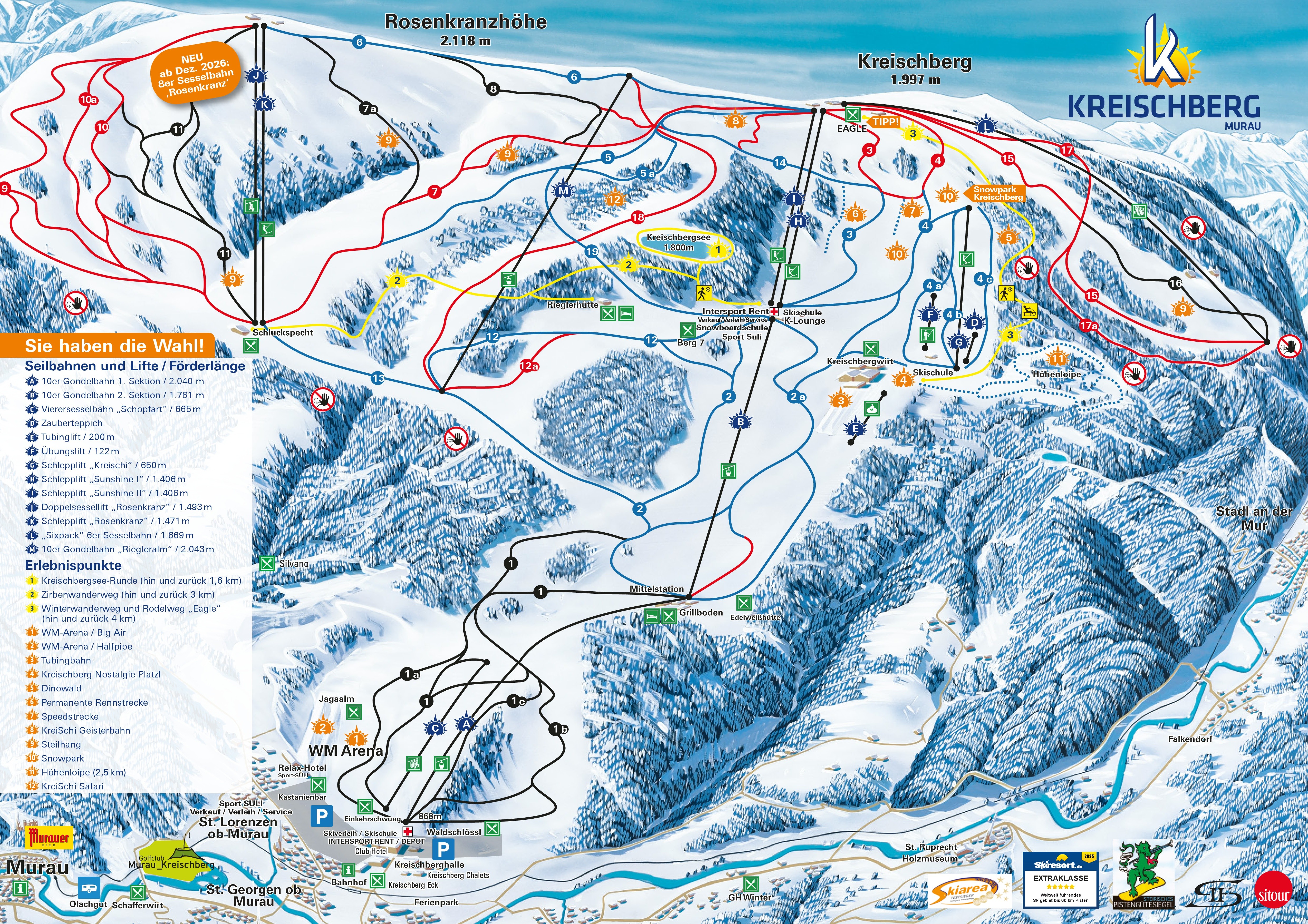 - Offering 42 km of slopes and terrain, Mount Kreischberg is among the 3 largest Ski Resorts in Styria.