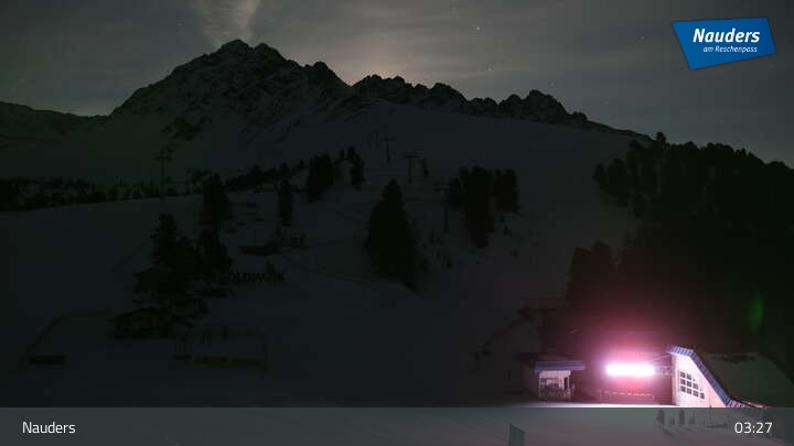 Archived webcam image showing Nauders Reschenpass upper station on 7 Apr 2026 at 03:08 02:00