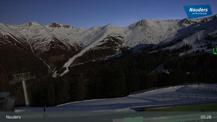 Archived webcam image showing Nauders Reschenpass upper station on 7 Apr 2026 at 05:08 04:00