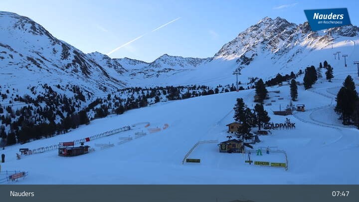 Archived webcam image showing Nauders Reschenpass upper station on 7 Apr 2026 at 07:08 06:00